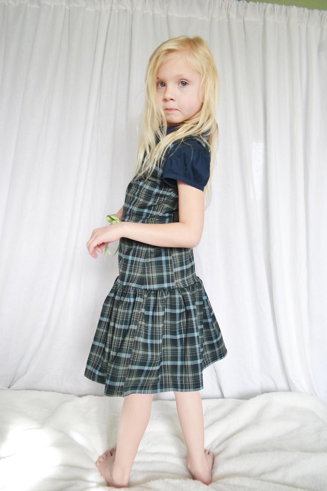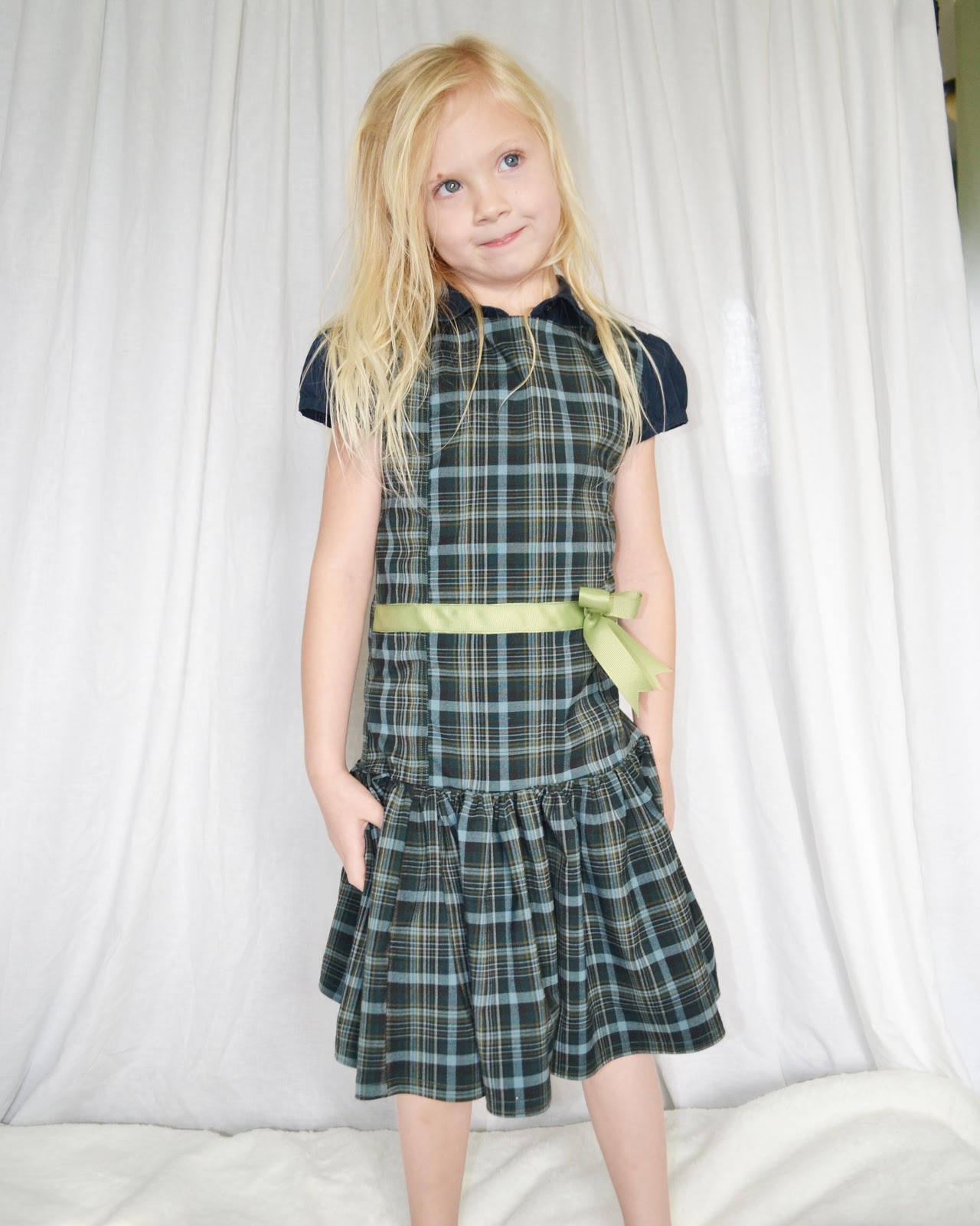 The dress I will get a tutorial up for. I didn't want to deal with zippers or buttons and since that fabric has a slight stretch to it, it worked out perfectly to pull over her head. :D