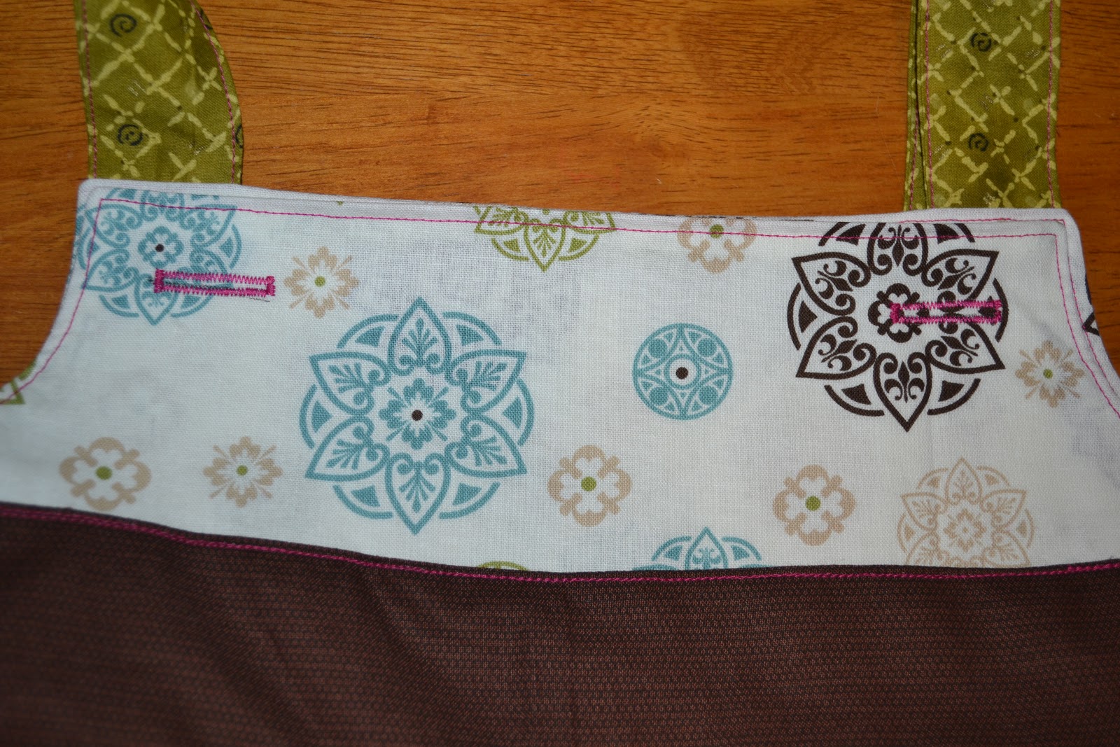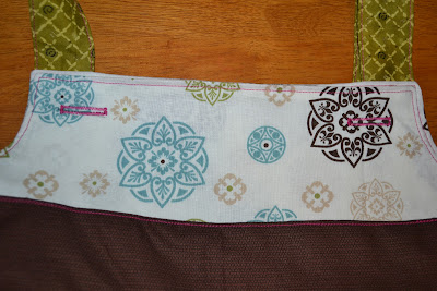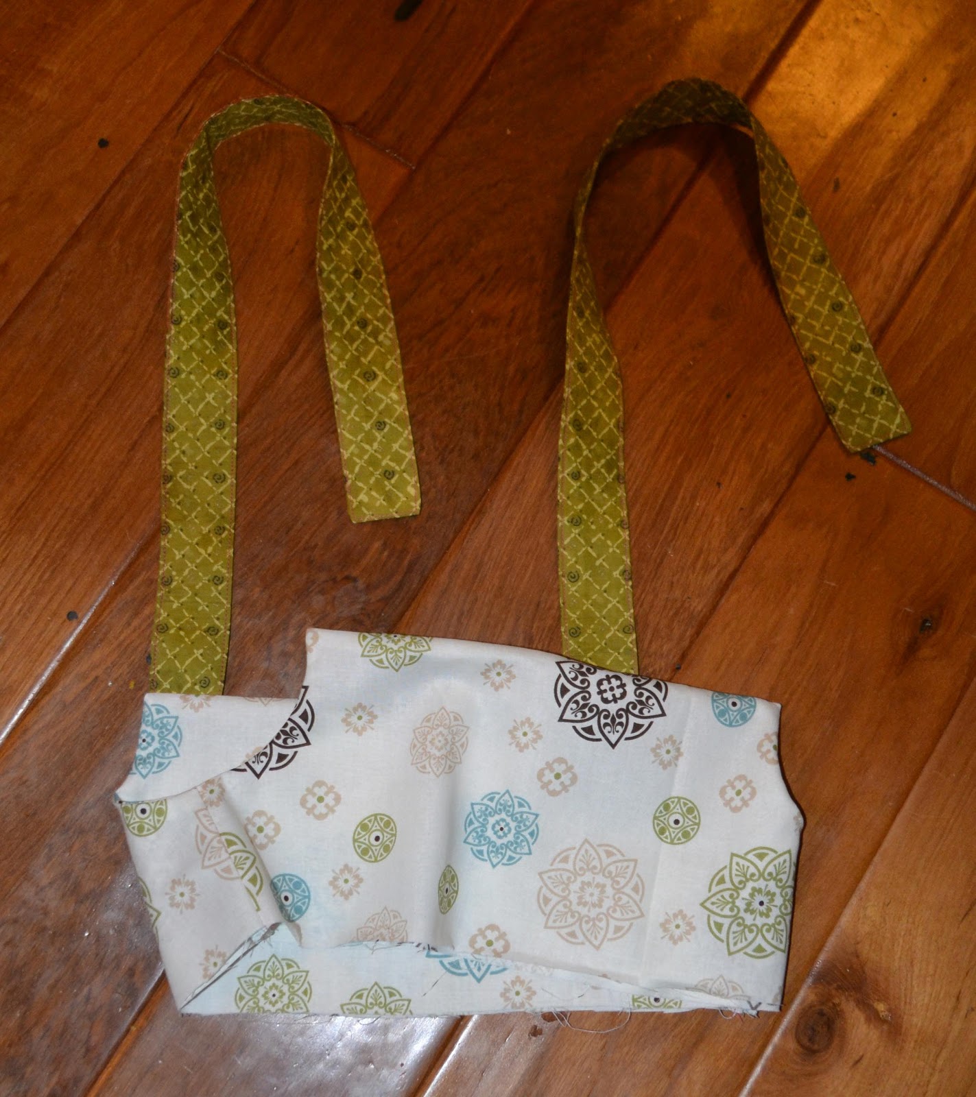 Now pretend the long pieces aren't sewn to anything and sew them like you would the shoulder straps. Turn inside out and baste. This is what the wrong side will look like when you are done: