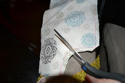 Now make some cuts around the shoulder seams so when you turn it it will lie straight. Just make sure not to cut into your line of thread!