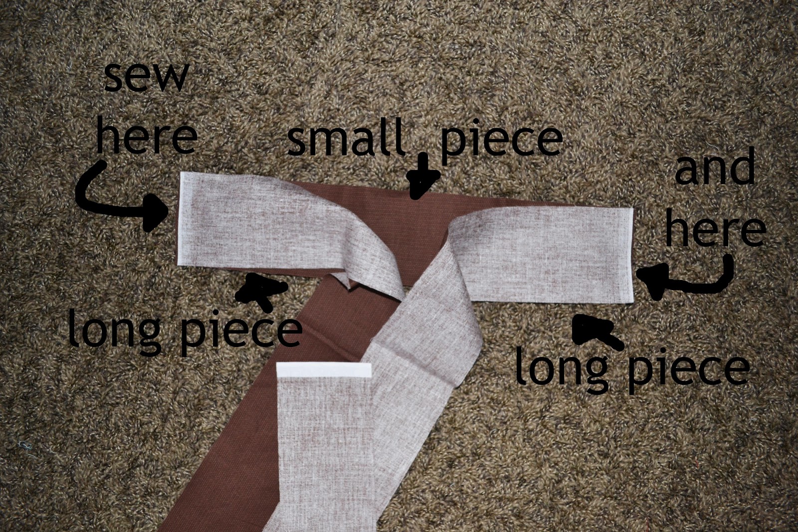 Now for the sash. Take the middle piece and sew one long piece to each end.
