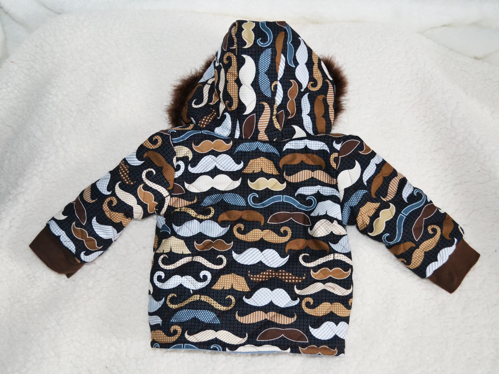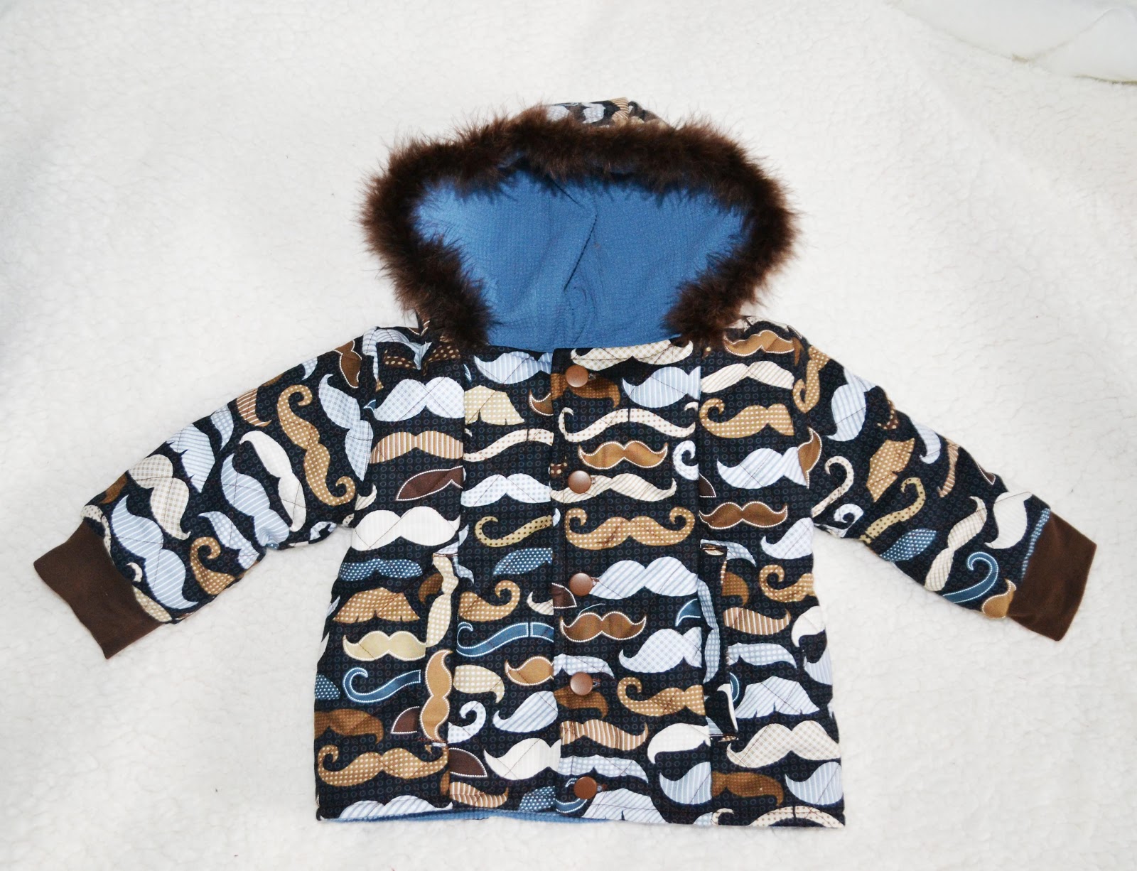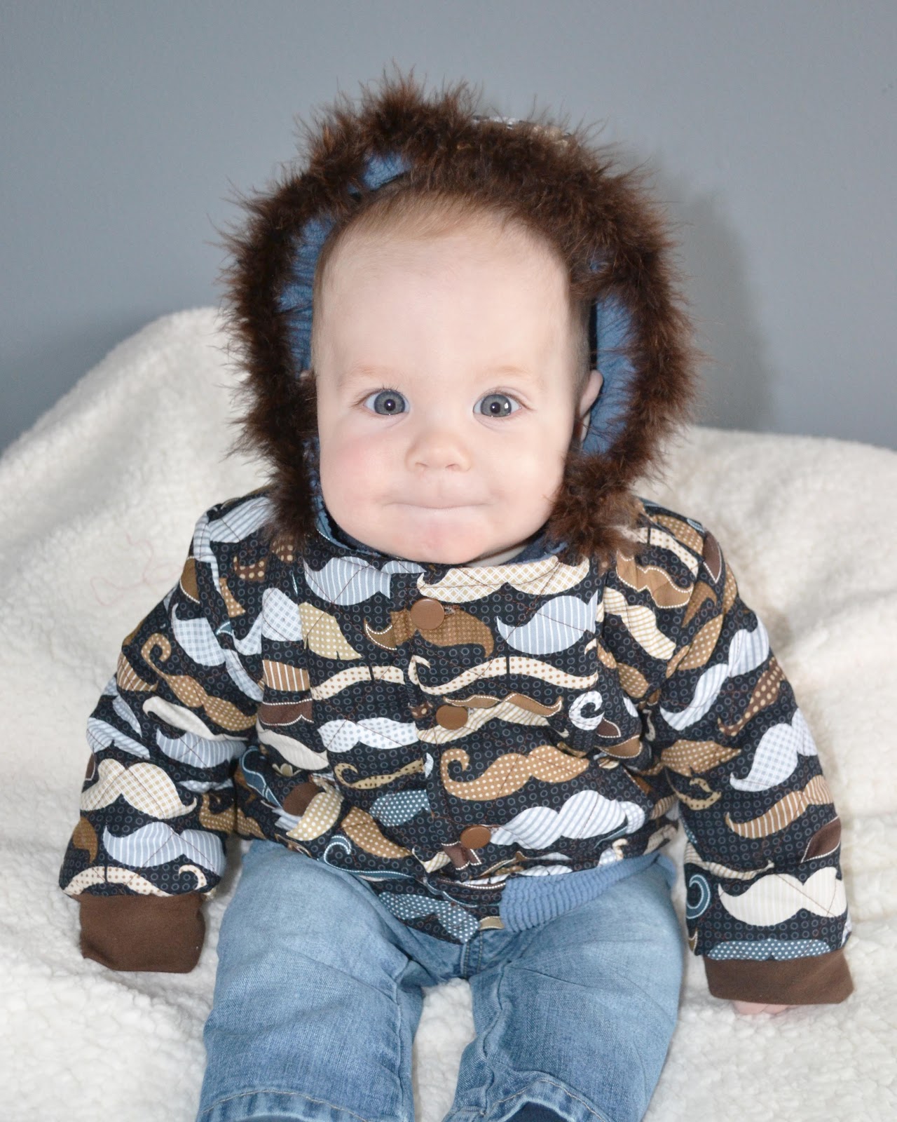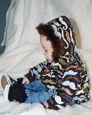 I got my first opportunity to test a pattern out. I LOVE it! When I went to the store to buy the fabric I had chosen some chevron print at first, but then when I saw this moustache fabric, I couldn't resist! The coat turned out awesome. Hippie is nice and cozy in it. The pattern is from Peek-a-boo patterns and will be available for sale in January. I love Peek-a-boo patterns. If you havn't checked them out, do. The clothes turn out super cute and the patterns are so easy to follow and are very thorough.