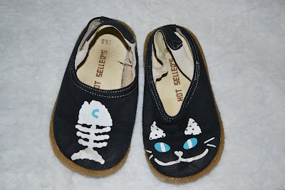 I've decided to enter my Cat and Fish-bone knot dress for Project Run and Play. This outfit was inspired by a pair of Shoes. Yes. A pair of shoes. These shoes to be exact: