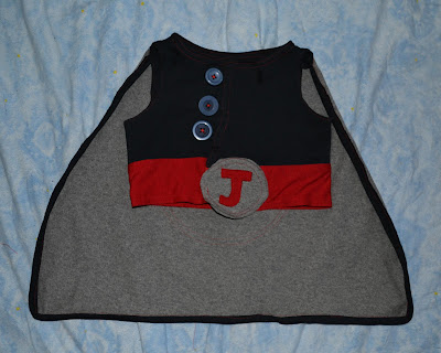 For each week I not only want to do a girl look but a boy look as well and after seeing someone on the crafty sewing mommas group post a picture of a bunch of super hero capes, I thought this would be interesting to try it out with this pattern. I had an idea of how I wanted it to look and just went head on into it. I ended up modifying it as I went. :D It didn't turn out bad at all, but now I know exactly what to do with the girls! :D