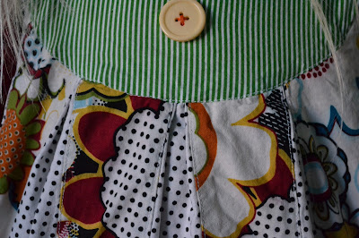 For week #2 the theme is Stripes and Polkadots. This one was probably my biggest challenge coming up with. I don't have many polkadotted or stripey fabrics and I had decided before starting this that I would only use fabric I have and not buy any new fabric. How many different fabrics were in my stash that fit the bill? 3 stripey ones and 3 polkadotted ones. They really didn't match each other at all either. After realizing that I had some flower fabric that matched the plain black and white polkadot fabric and had green in it, I made a plan. Here's what I came up with: