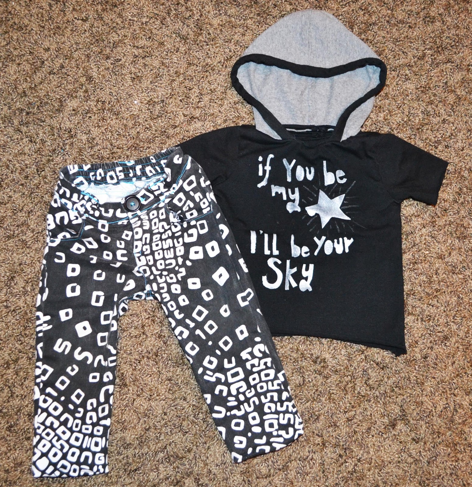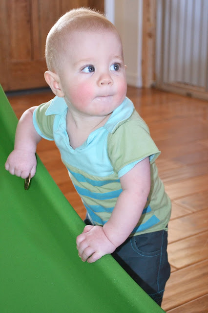 For the boy, I had to think outside the box a bit. It couldn't be a dress, for starters. And we definitely were not going to add ruffles. I've already been parading him everywhere with a pink blanket, no need to further damage him.