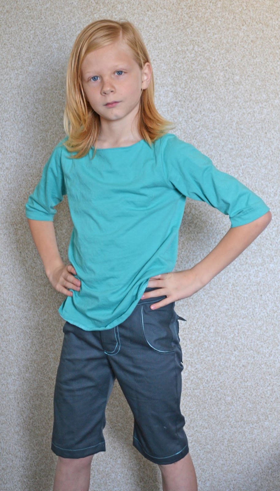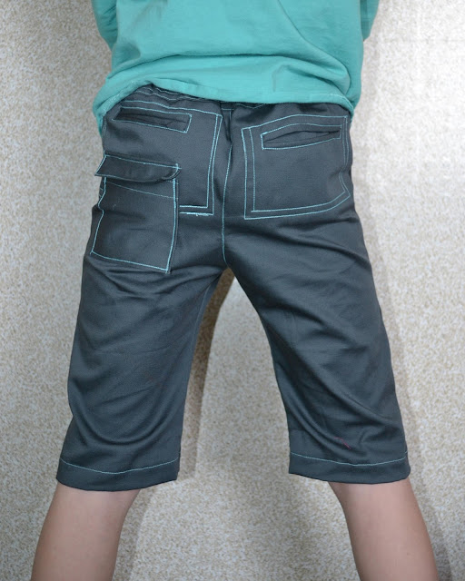 I did modify the shorts too. My son is almost 10, but wears size 12 pants for the length, but seriously has the waist of a 6 year old. I just added 2 inches to the length and think they turned out perfect! :D Oh, and the pockets were one of those awesome mistakes that afterwards you just say you originally planned them that way.......