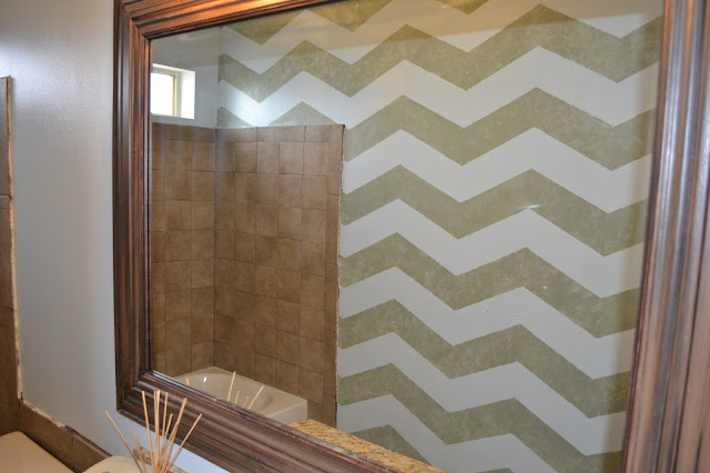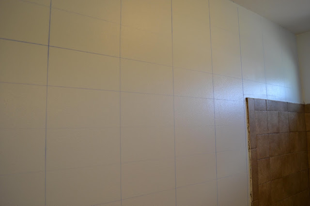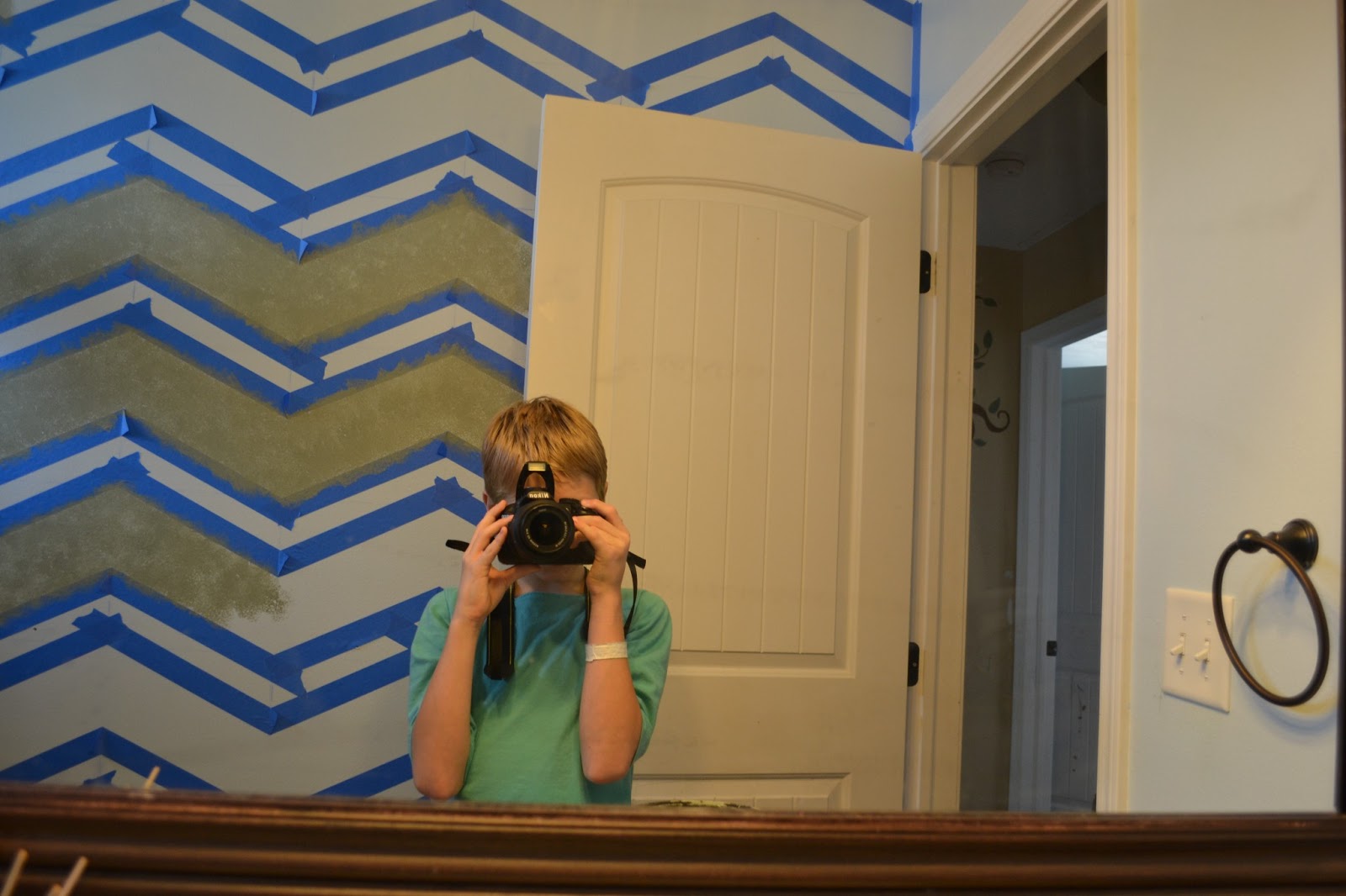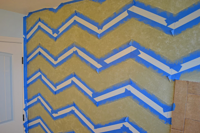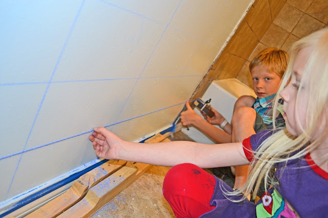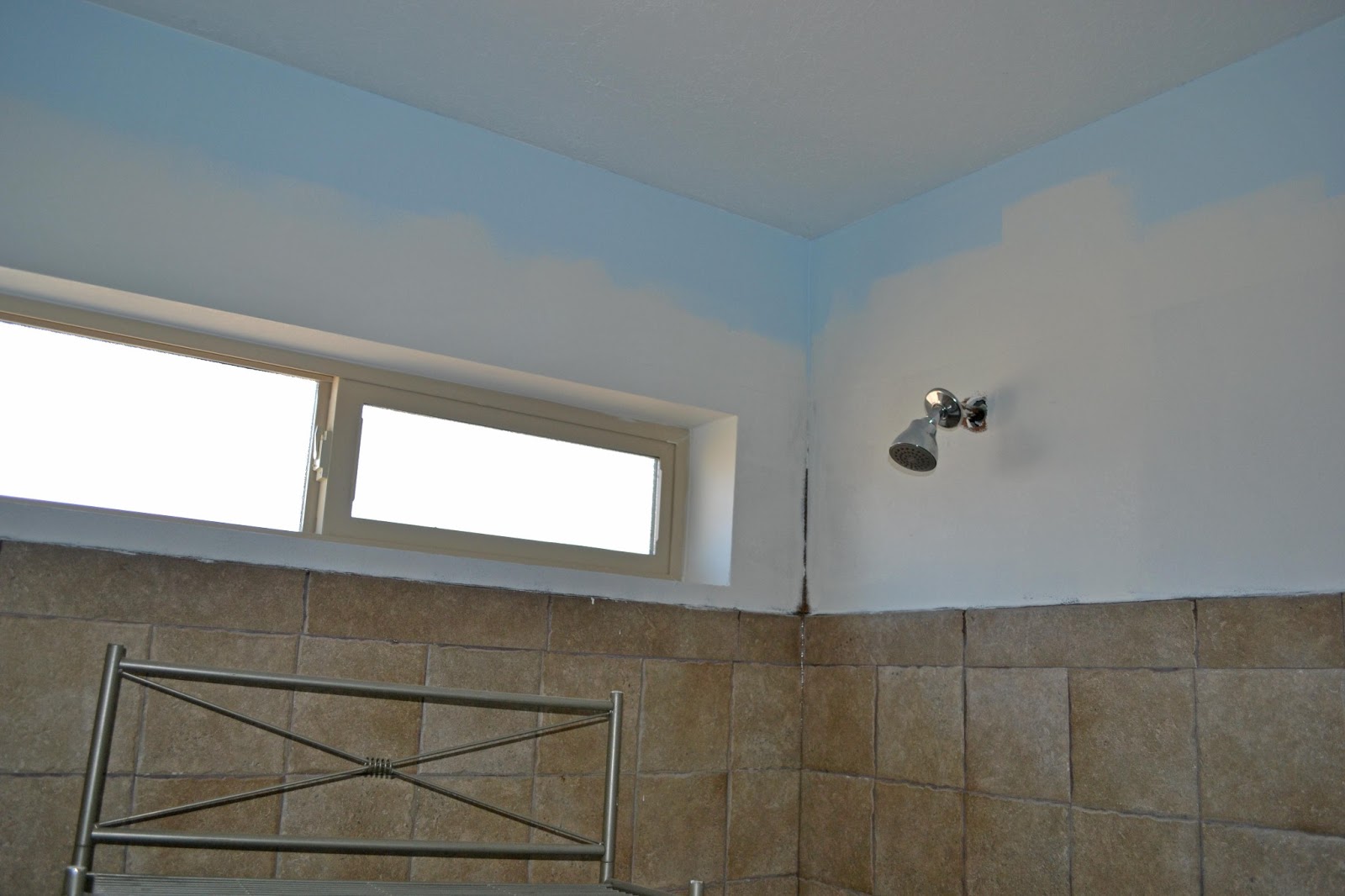 Sadly I don't have a picture of what it looked like before we started trying to fix it. I had originally painted it light blue and half way up the wall, painted it brown. I seriously did have a cool awesome idea planned, although I can't for the life of me recall what that awesome idea was. It had to be awesome though, cause I just don't do anything other than that. lol