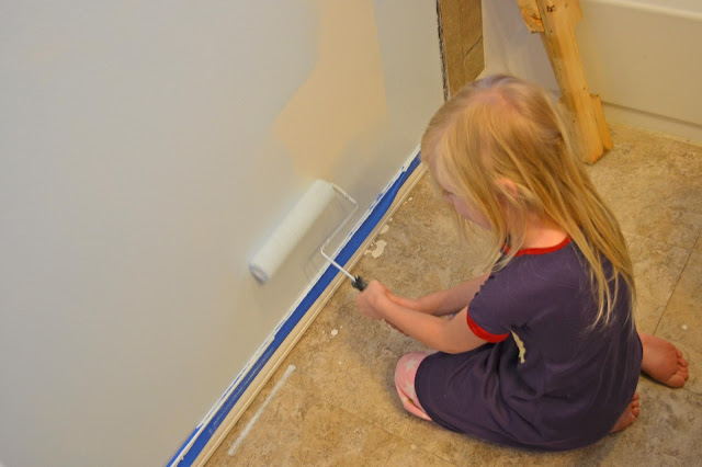 The theme for week 2 is Home Decor. Now, we have been in our house for 2 years (on the 18th) and I really don't have much decorated. I thought this challenge would be a good push to get a room done. I immediately thought of the kids bathroom. The kids wont use it and have been using ours instead. It is driving me insane! So I am hoping (fingers triple crossed!) that by finishing it and making it more "warm" the kids will somehow decide they would rather use it and it's teeny bathtub, rather than ours and our lovely big one.