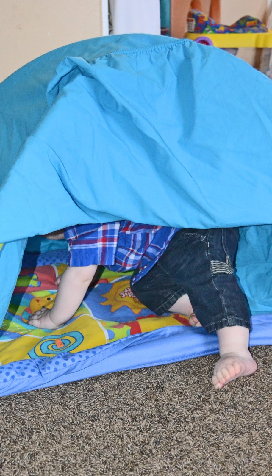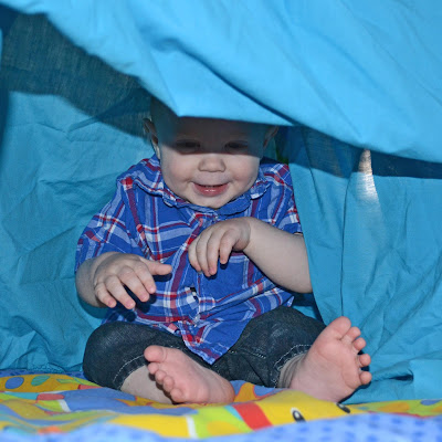 We found out that Jude loves tents. Gavin put a sheet over his little play mat thing and he has been crawling in and out and giggling about it the last few days.