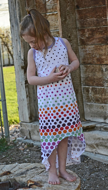 This pattern was a lot of fun. I really liked the hi-low skirt and the racer back. It also came together SOOO fast. I had the first one made in an hour and the second one less than that.