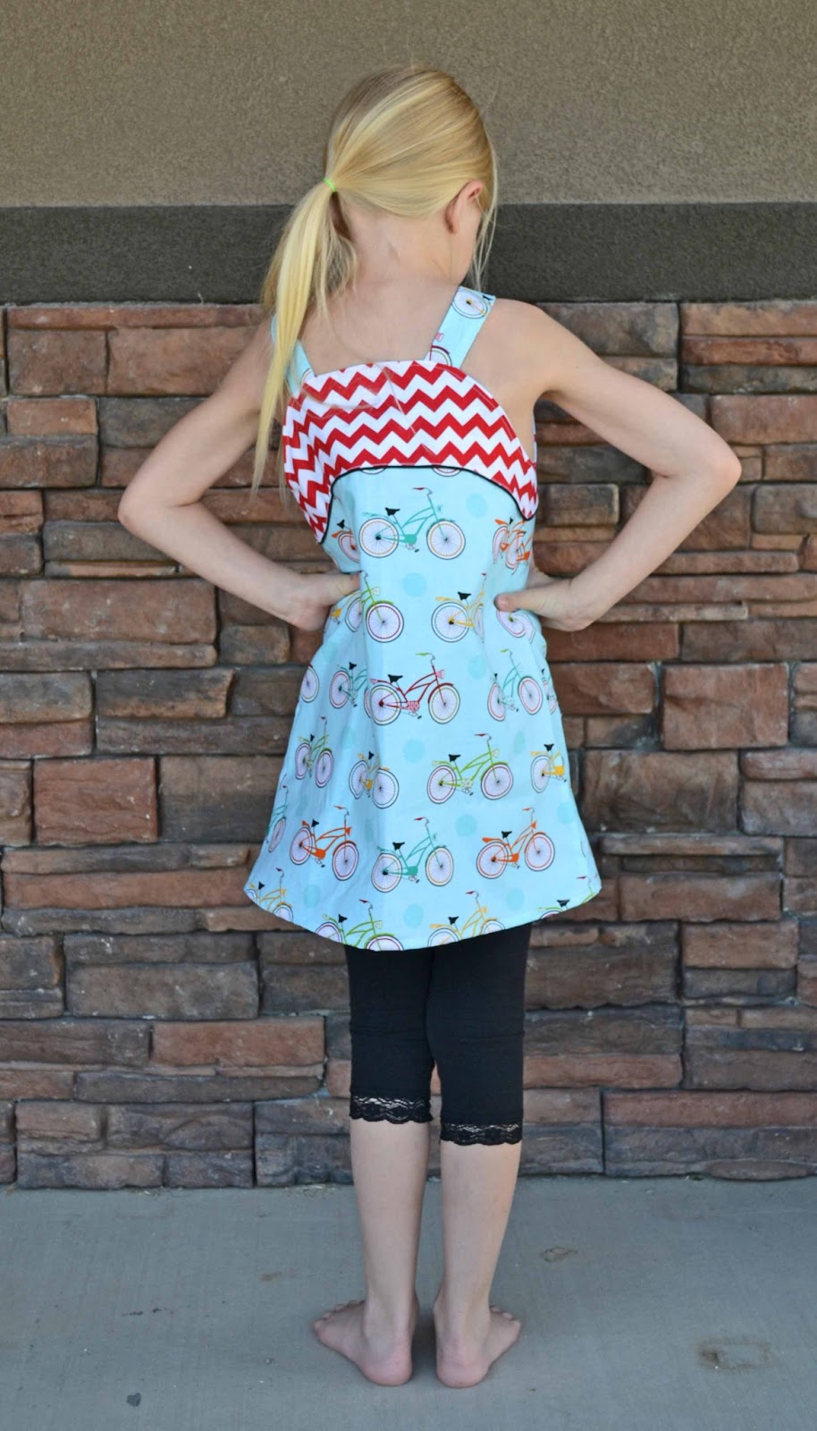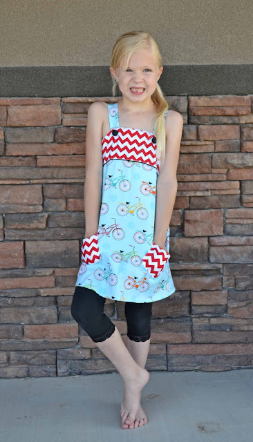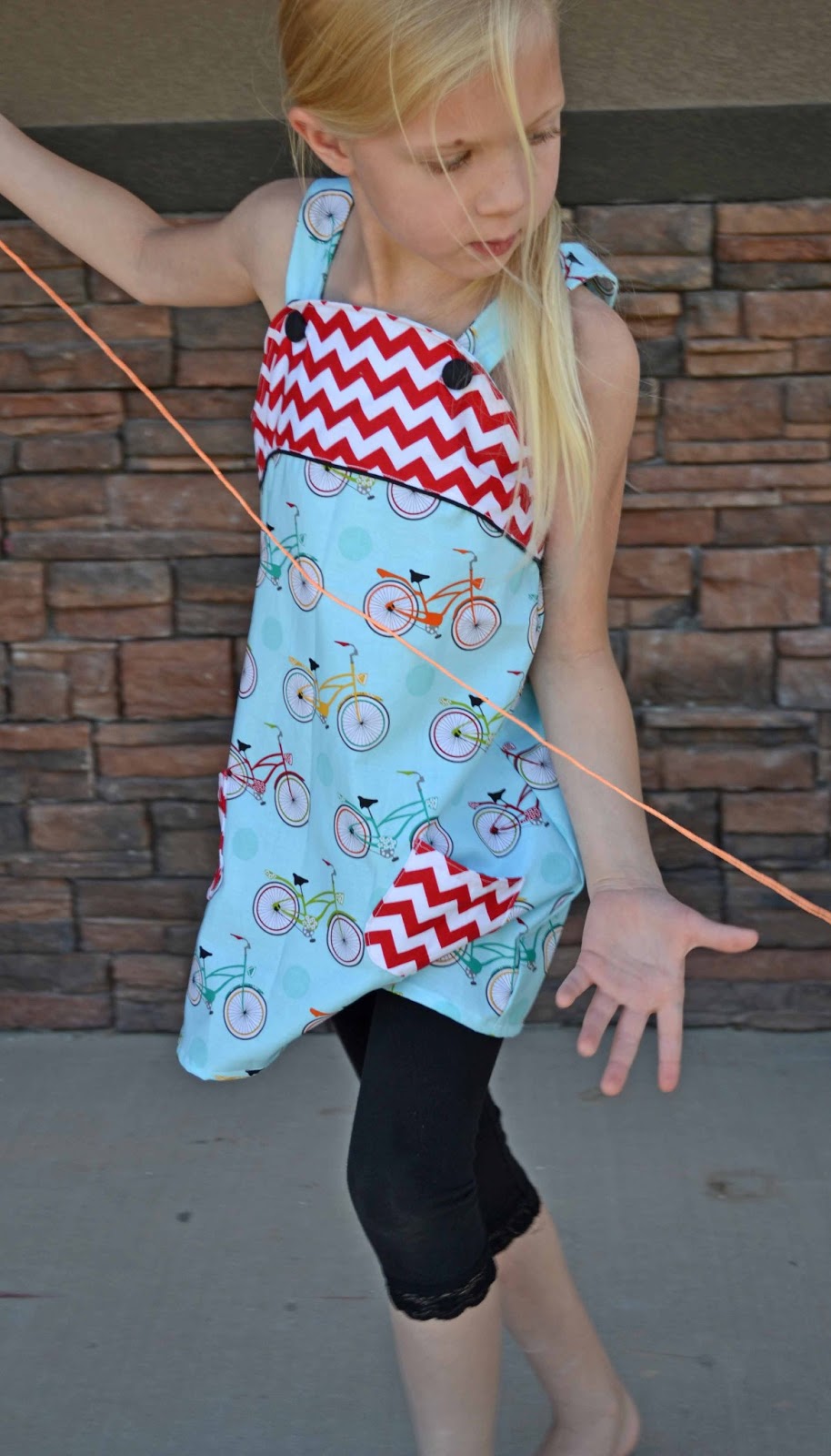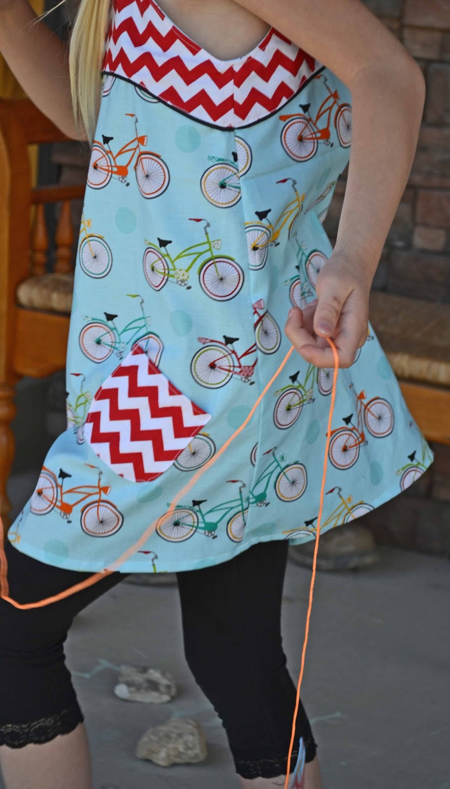 I just love the fabrics on this one. It was still a little long, but I love that since my kids grow fast. Does anyone's grow slowly?? And if in fact someone has found a way to keep their kid little longer, do you want to pass on the secret?