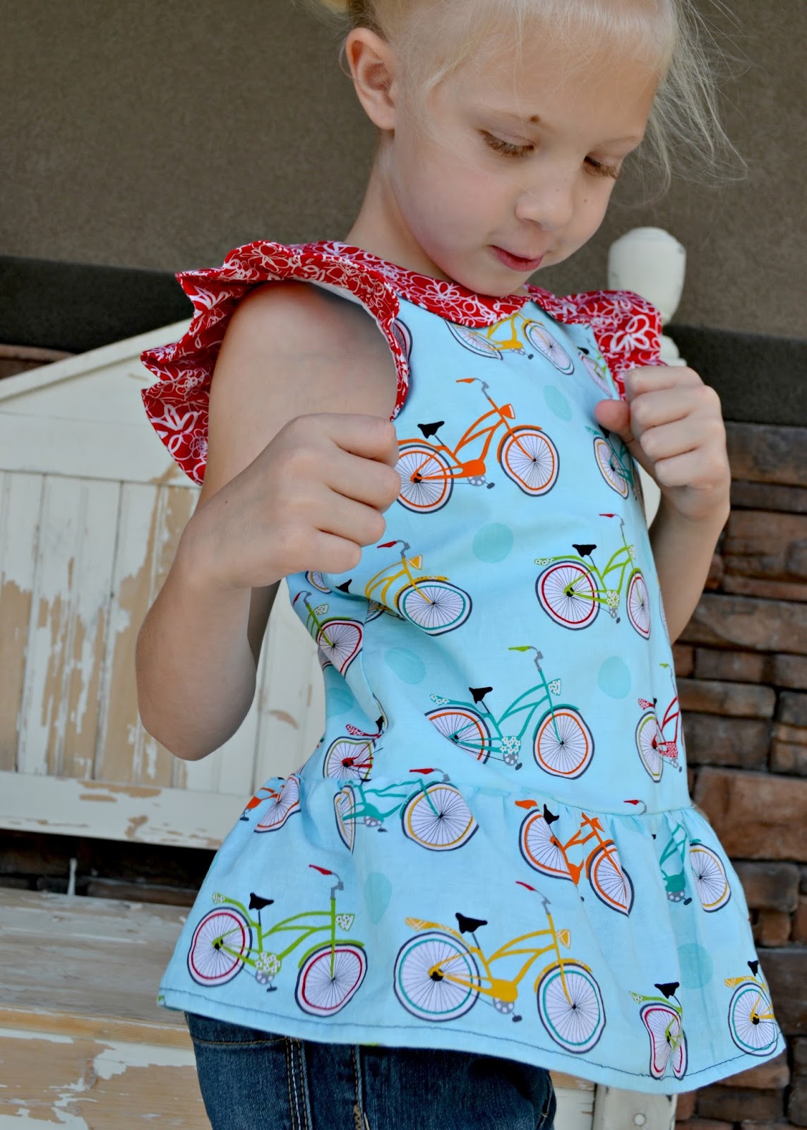 Nice summer top with those bikes! Love the red accents too.