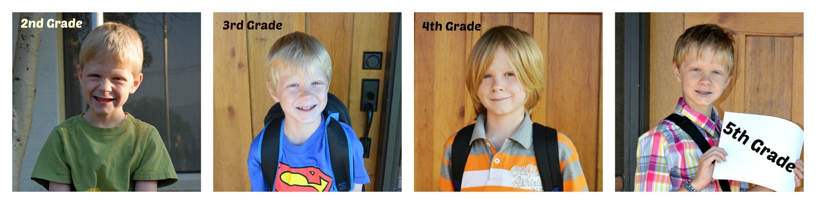 I don't have all of Gavins "First Day of School" photo's on this computer, but we have from 2nd grade up. lol