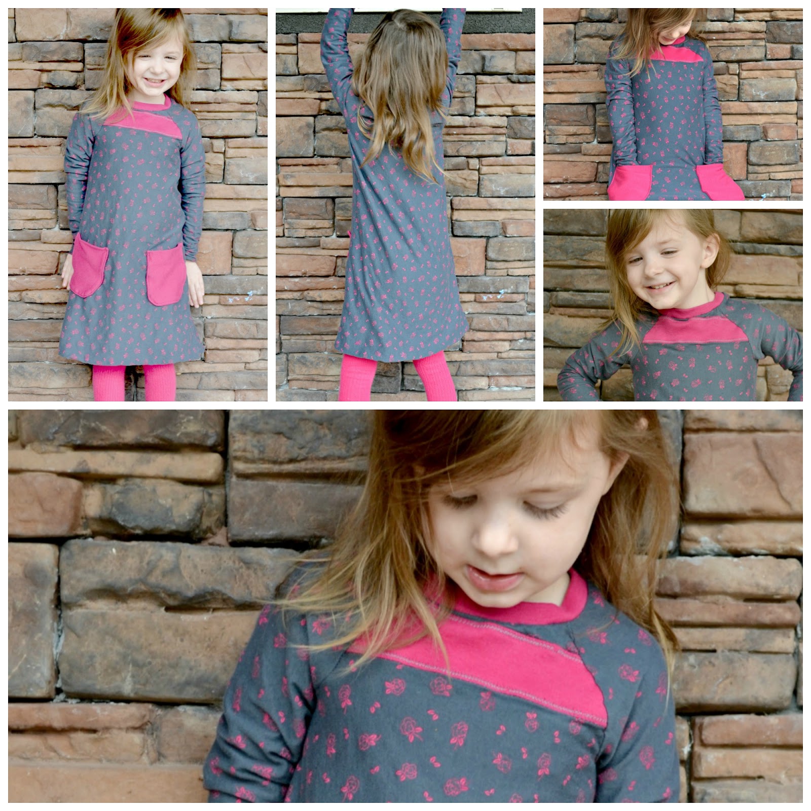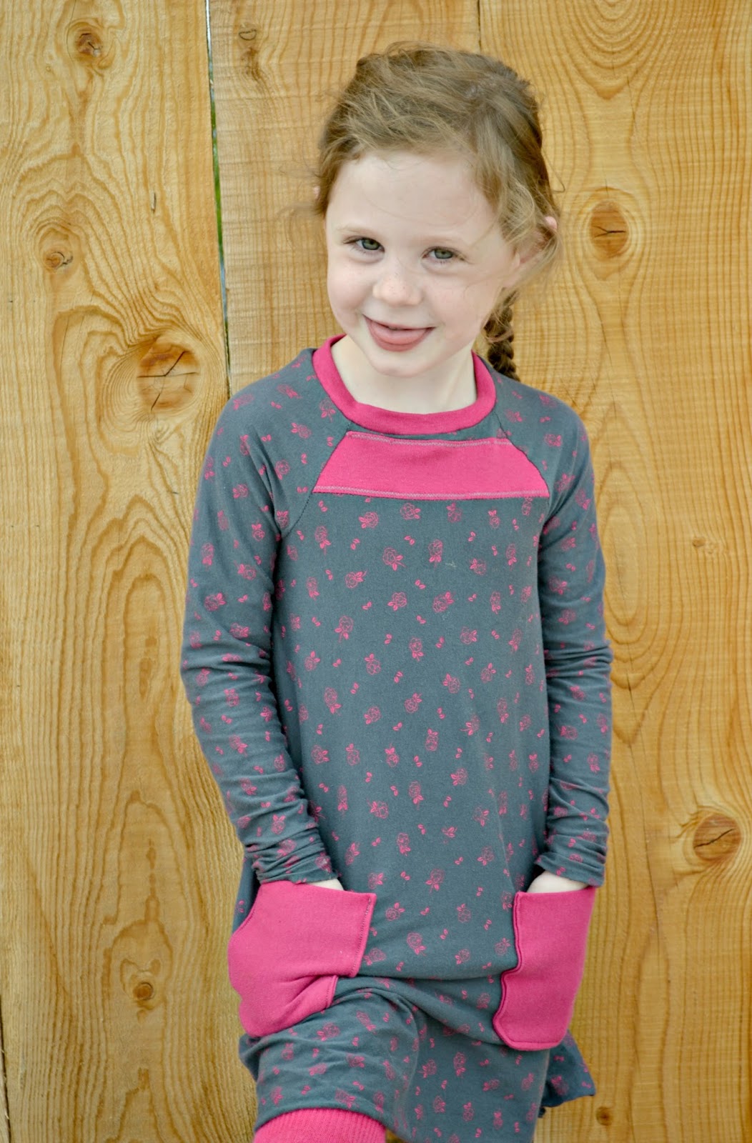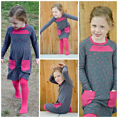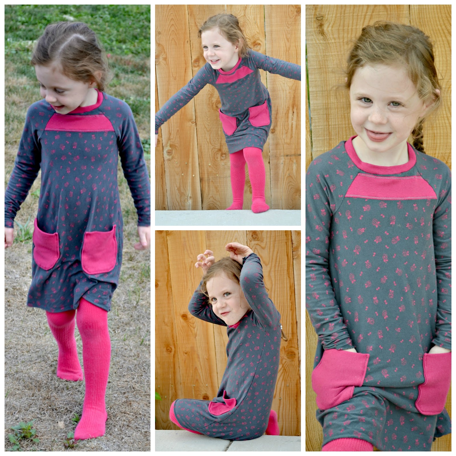 After I made Jude's Jacket, I started thinking that with a little more adjustment, the pattern I made would make a great raglan tee or dress. Since I hadn't made a girl flip for this week, I figured I could make Paisley or Zoe (since they are both almost the same size) a little knit dress for school.