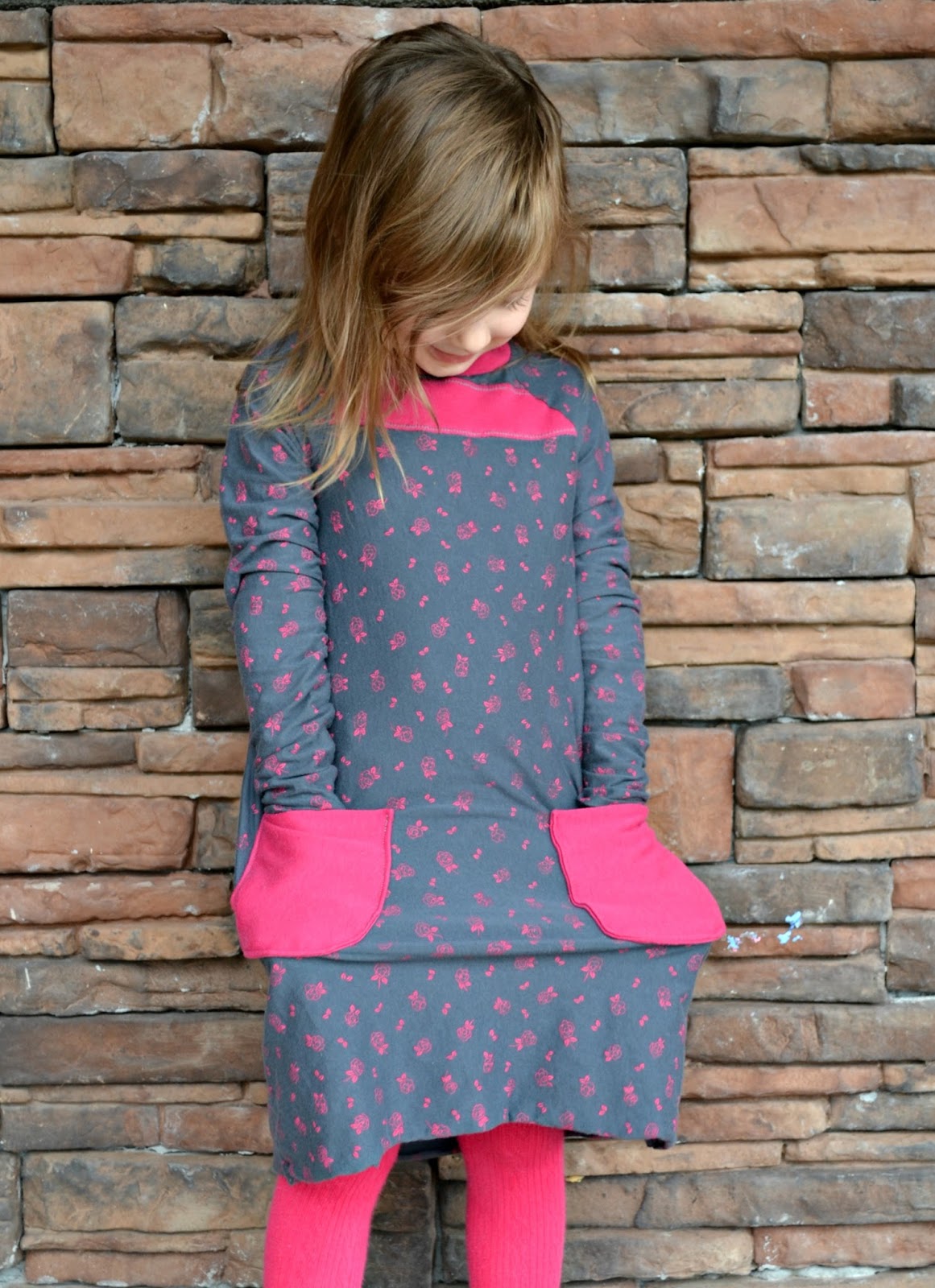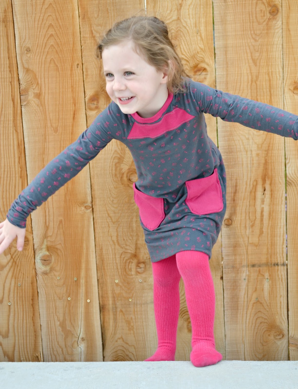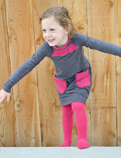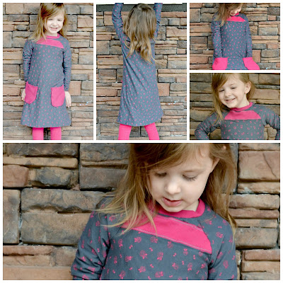 After I made Jude's Jacket, I started thinking that with a little more adjustment, the pattern I made would make a great raglan tee or dress. Since I hadn't made a girl flip for this week, I figured I could make Paisley or Zoe (since they are both almost the same size) a little knit dress for school.
