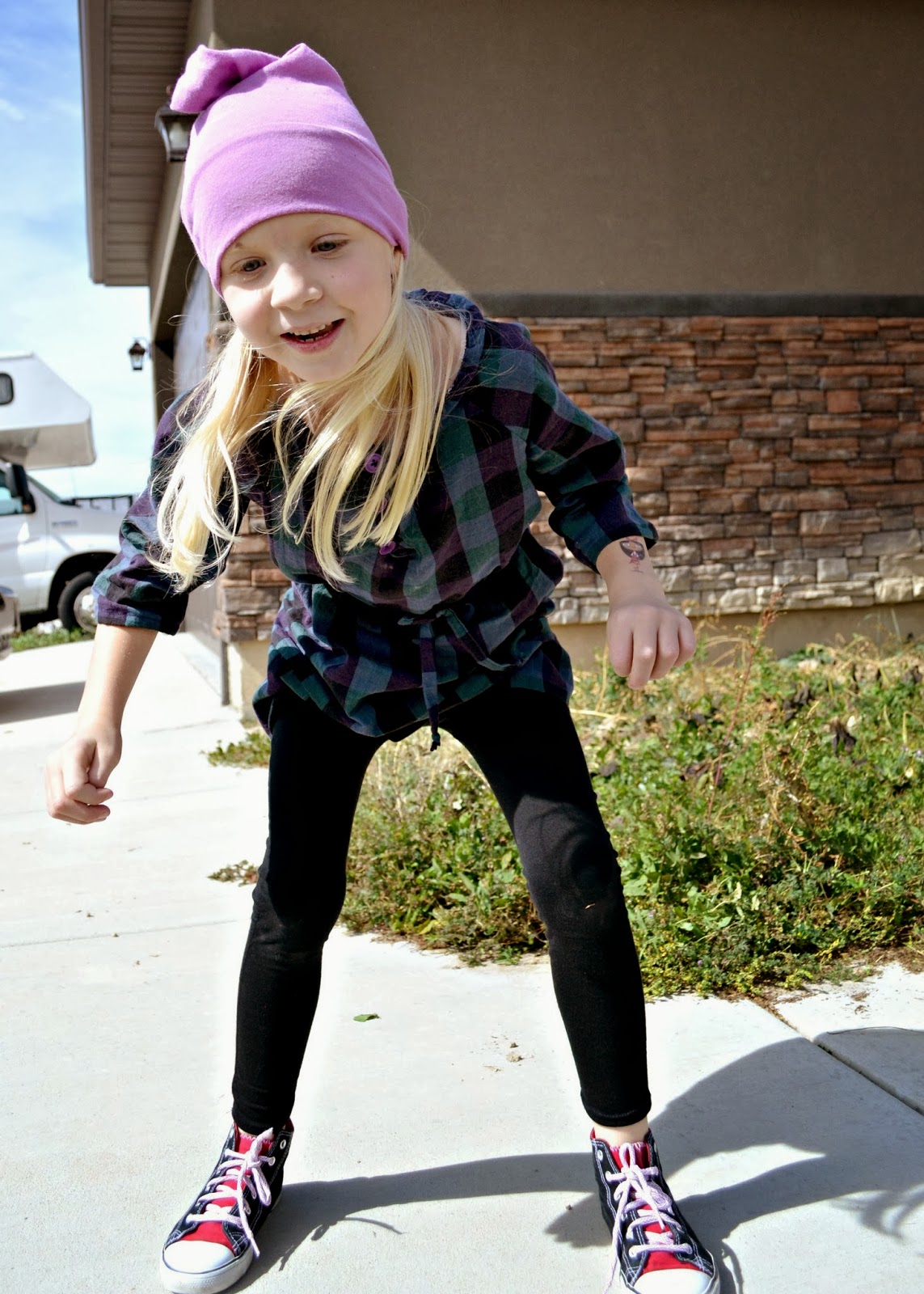 The leggings are from the same issue of Ottobre as the tunic. Super basic and I made them in black knit so that they can go with tons of her other outfits.