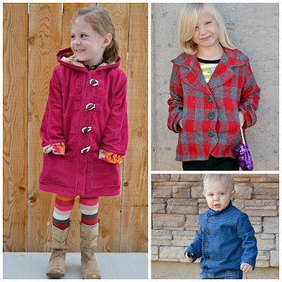 The pink is the Downton Duffle by Peekaboo Patterns. It's a size 8 and is supposed to be a much more fitted coat, but I love how it looks on my little miss Zoe (she's in size 5/6 for reference) and she loves it so much, I don't have the heart to part her from it.