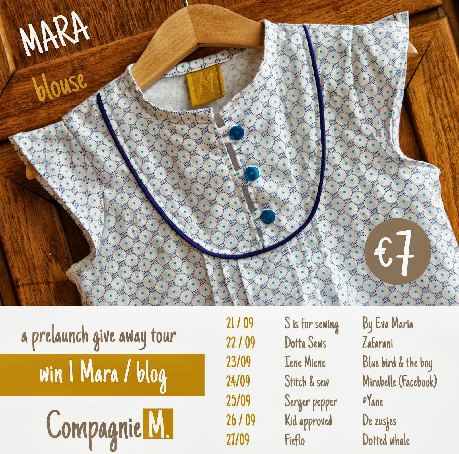 A while ago (June to be exact) I got the opportunity to pattern test this really REALLY adorable shirt for Compagnie M. If you haven't been to her blog, you should go. She has some really fun free patterns and her stuff is just gorgeous! Today, I am really excited to be able to share Compagnie M.'s first pattern, the Mara Blouse, which will be available October 1st. You also have the chance to win the pattern, so keep reading!