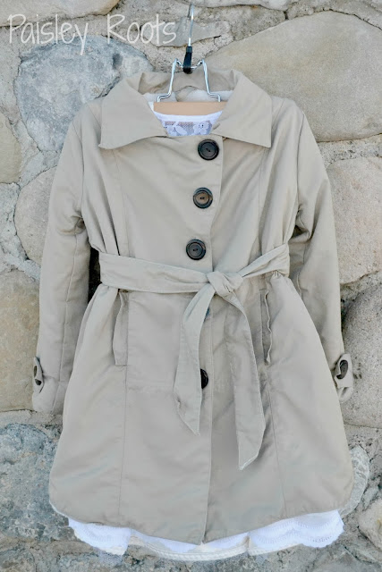 Now the trench coat is not really a stand alone item....you will still want to add some items of clothing underneath. You don't want a little flasher running around!