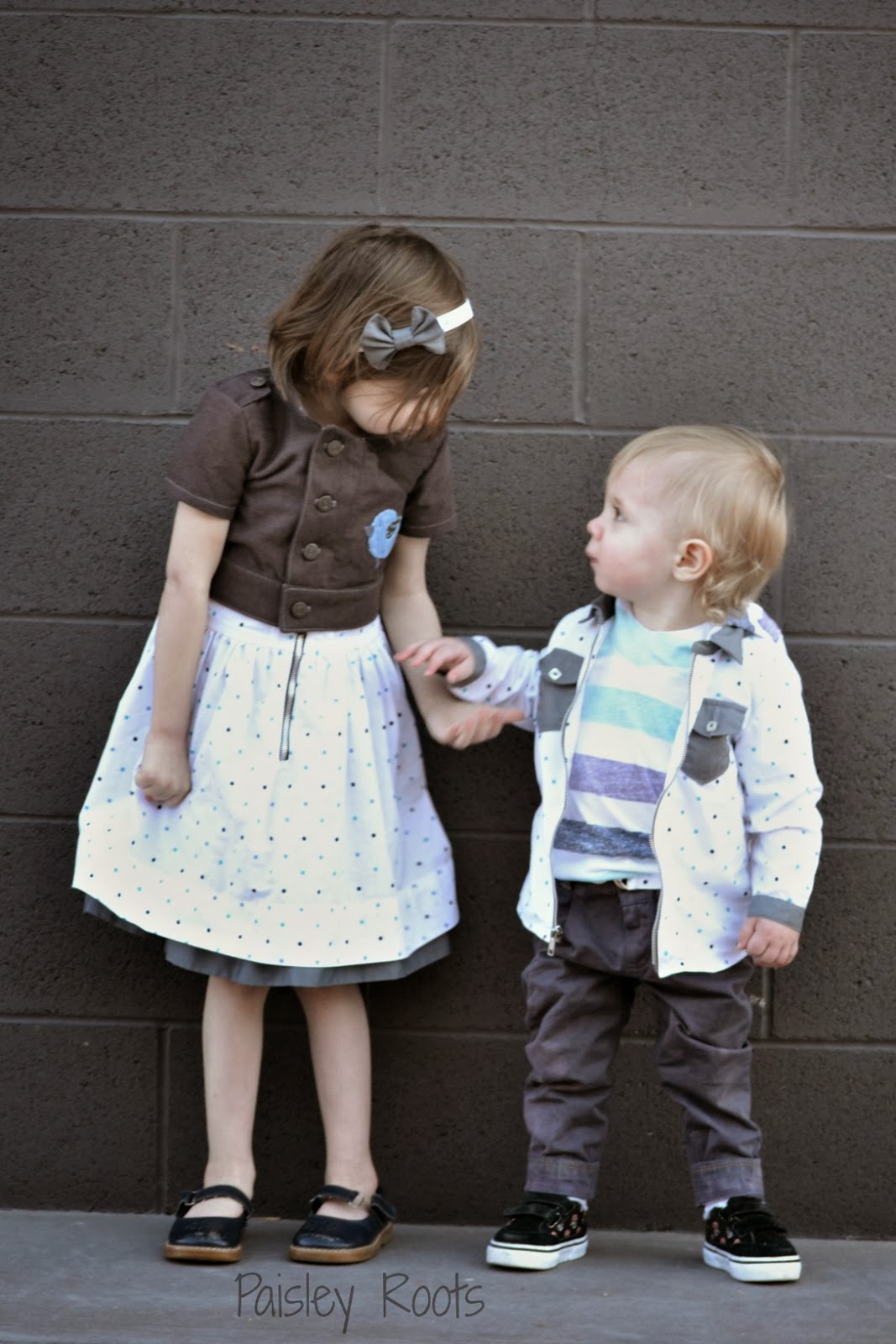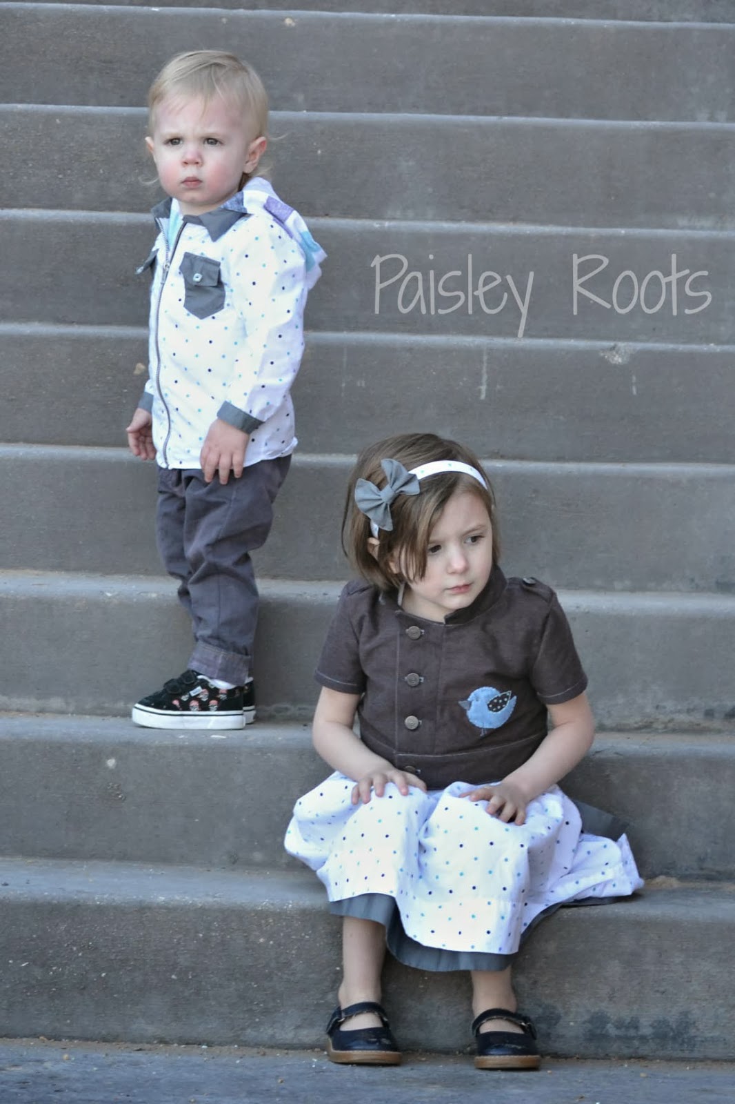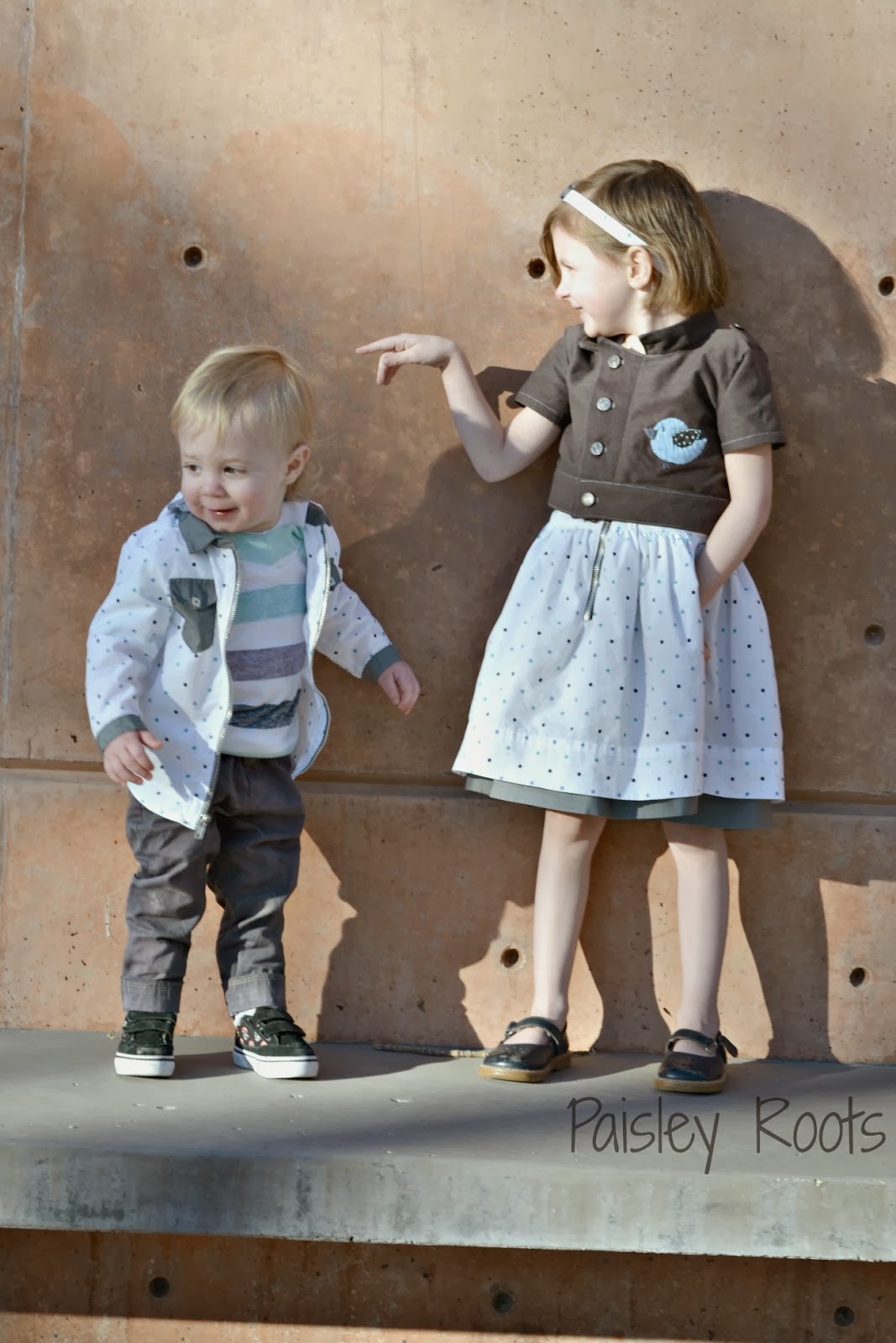 ReplyDeleteKarly, I love the pinafore look to the dress and his cute zip up collared shirt--great work this week:)
