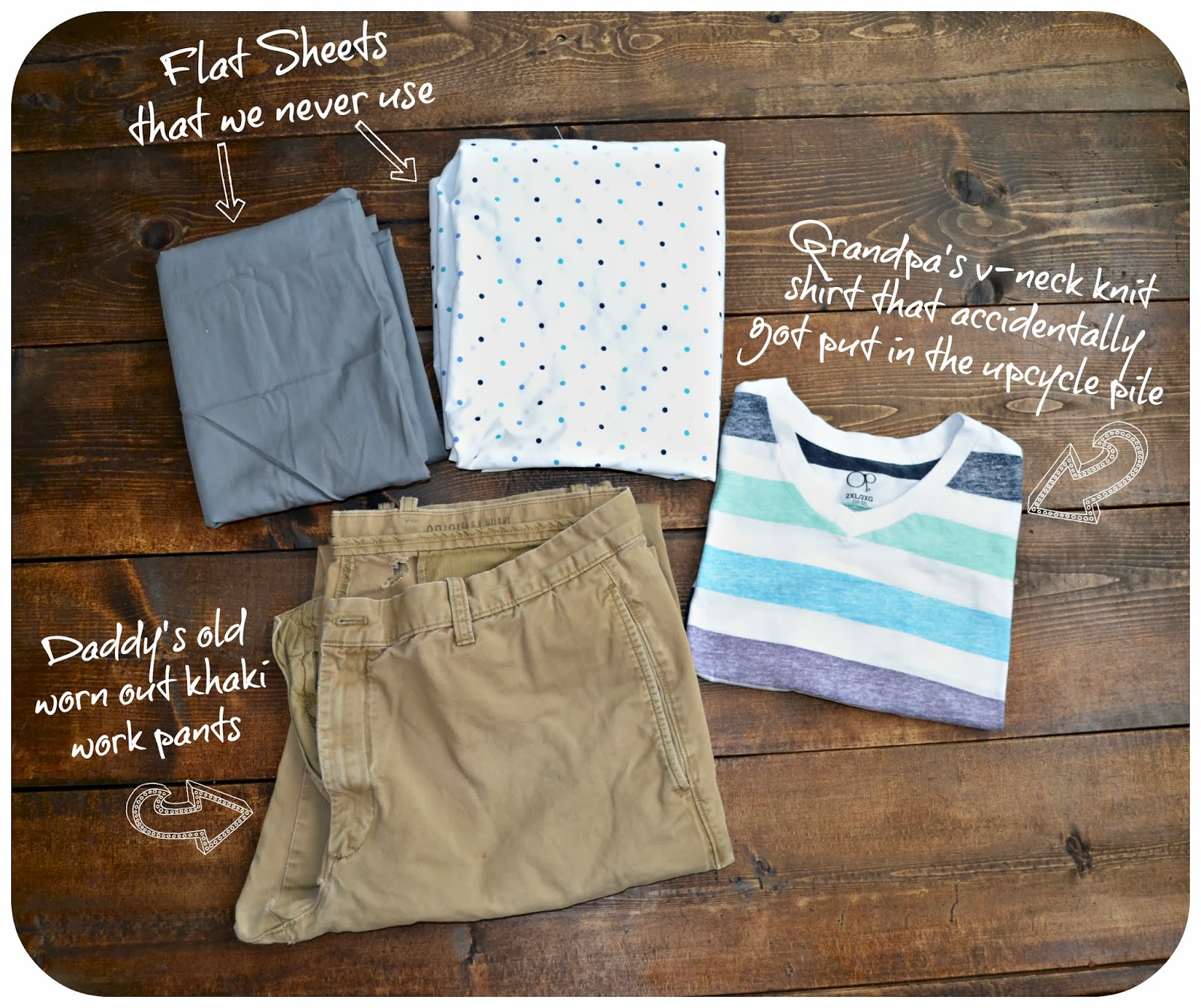 We're pretty big on upcycling here. Our girls currently get the "hand-me-down" system and Jude get's the "big brother and Daddy's clothes upcycled" system.