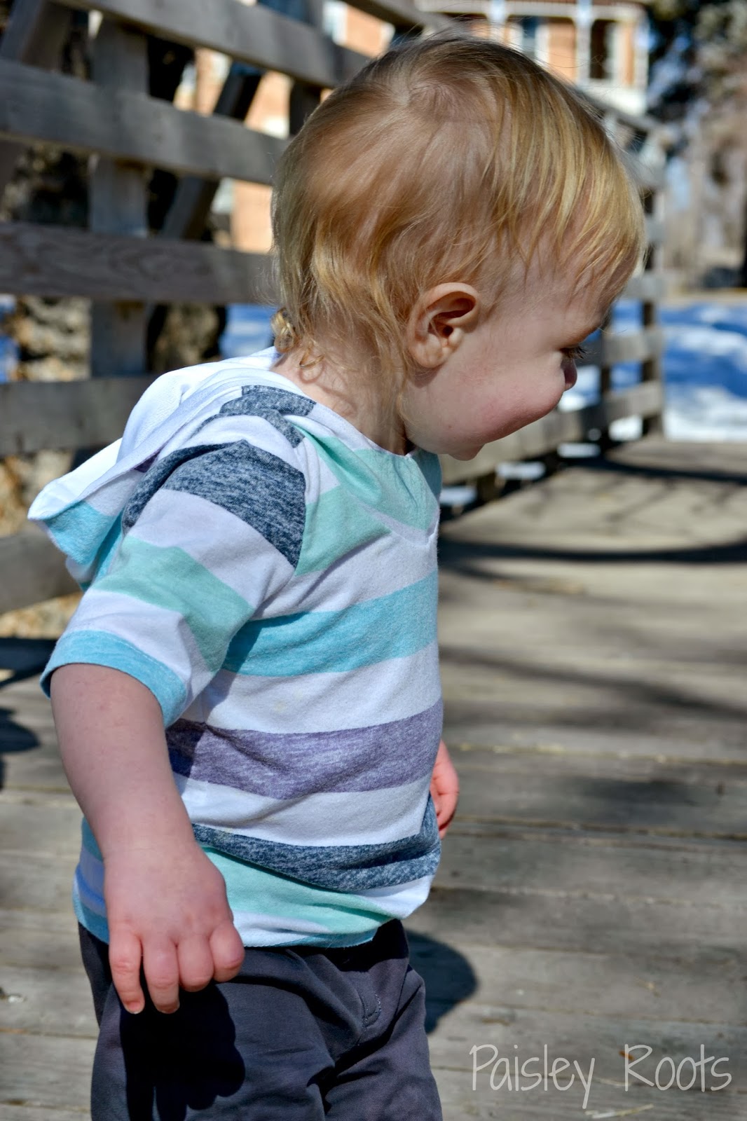 It wasn't until after I made Jude's hooded shirt and my dad saw it that he said, "Hey! That's where my shirt went!".....Whoops!