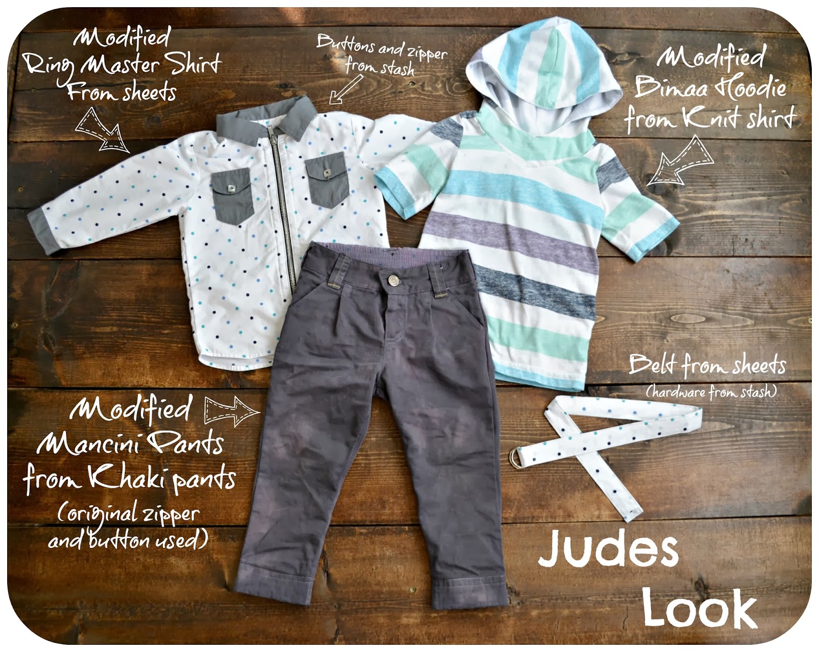 I made Jude a matching belt using the polka dot sheets and some d-rings that were in my stash.