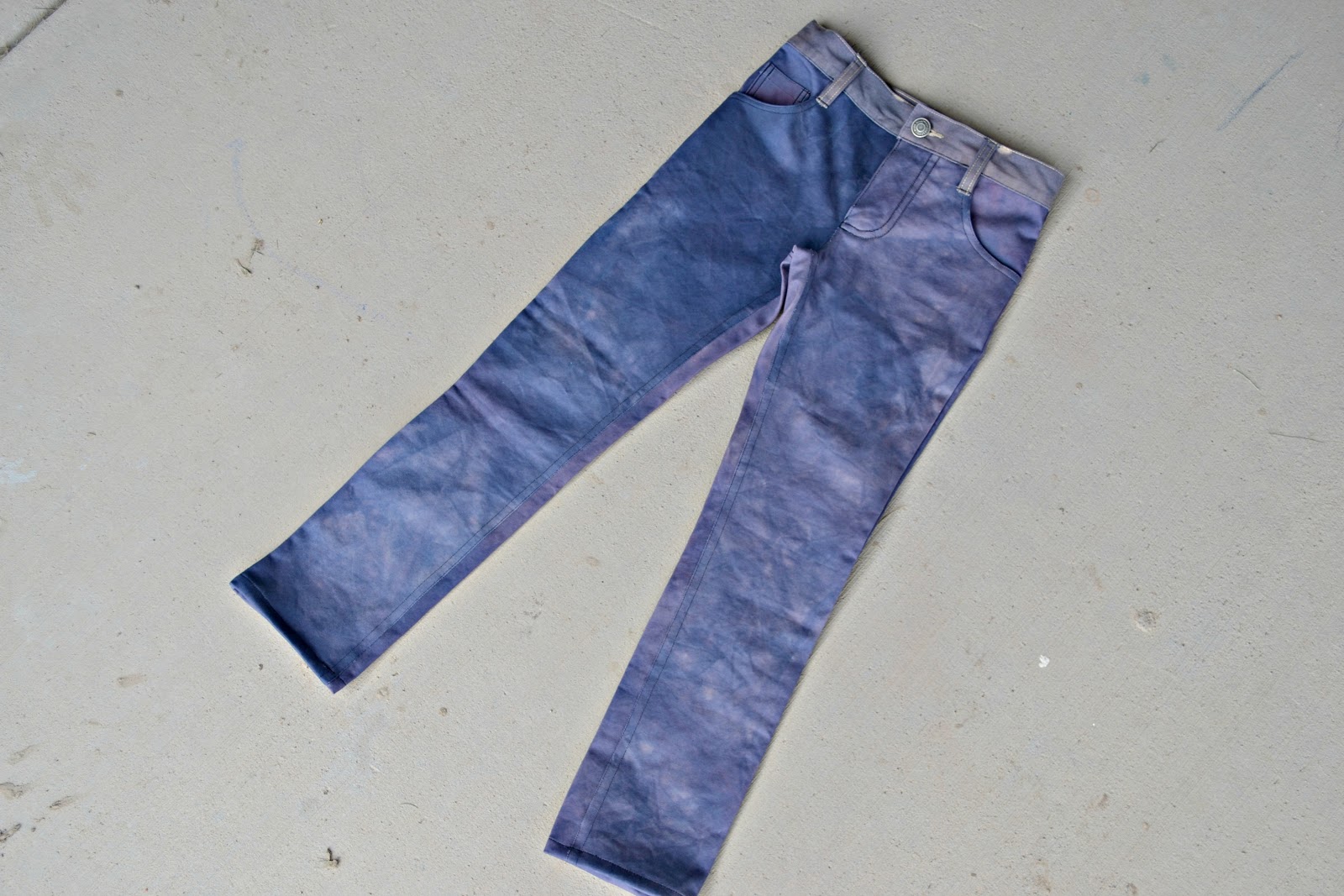 I slightly, SLIGHTLY cheated with the pants. I actually made them out of my husbands khaki's for my upcycle look when I was competing. But my mother came and took my son for a couple weeks and he didn't get to model them. Since Gavin's grown out of them since then, we shortened them for Aevarie and we dyed them purple. I used the Paperback Writer pants pattern from Ottobre 2010. We had dyed them blue for Gavin. LOL