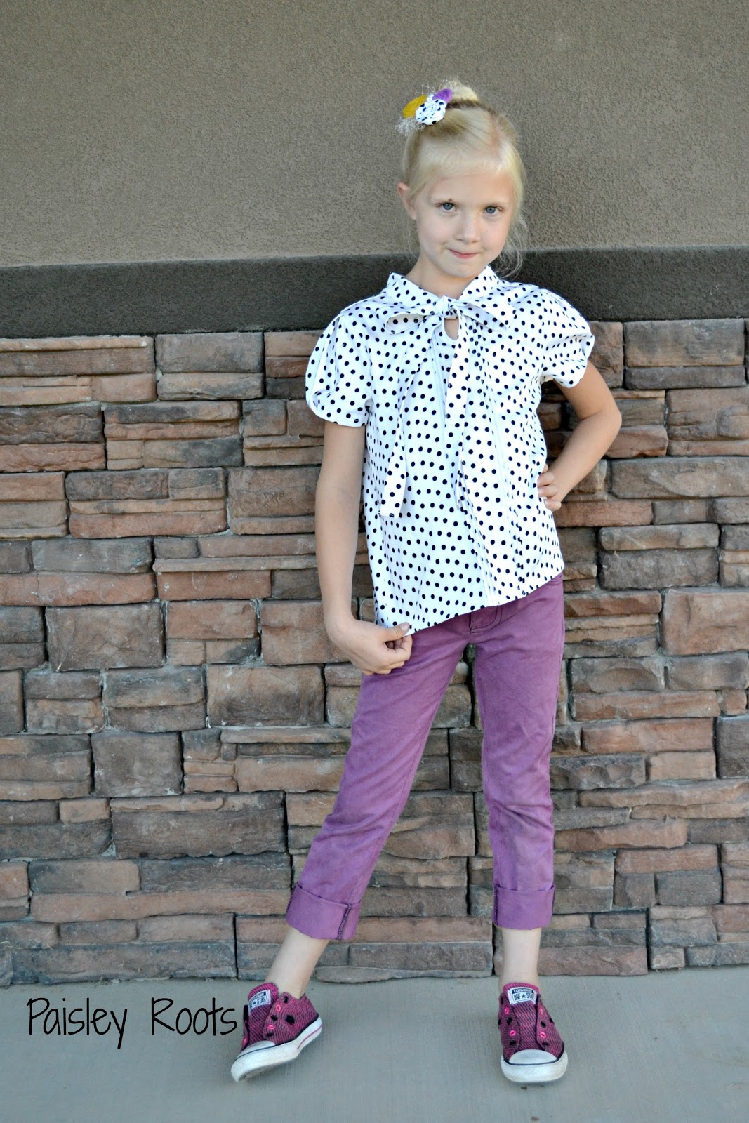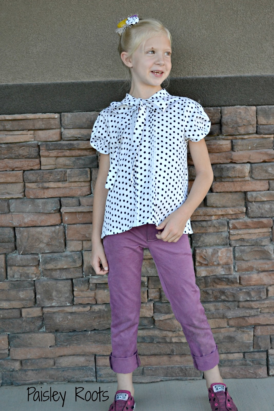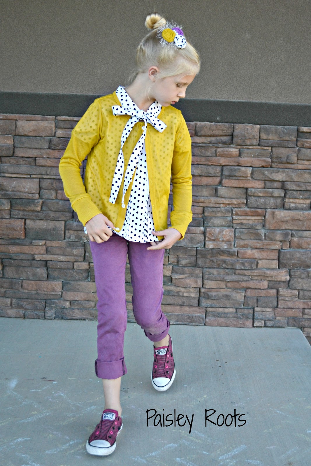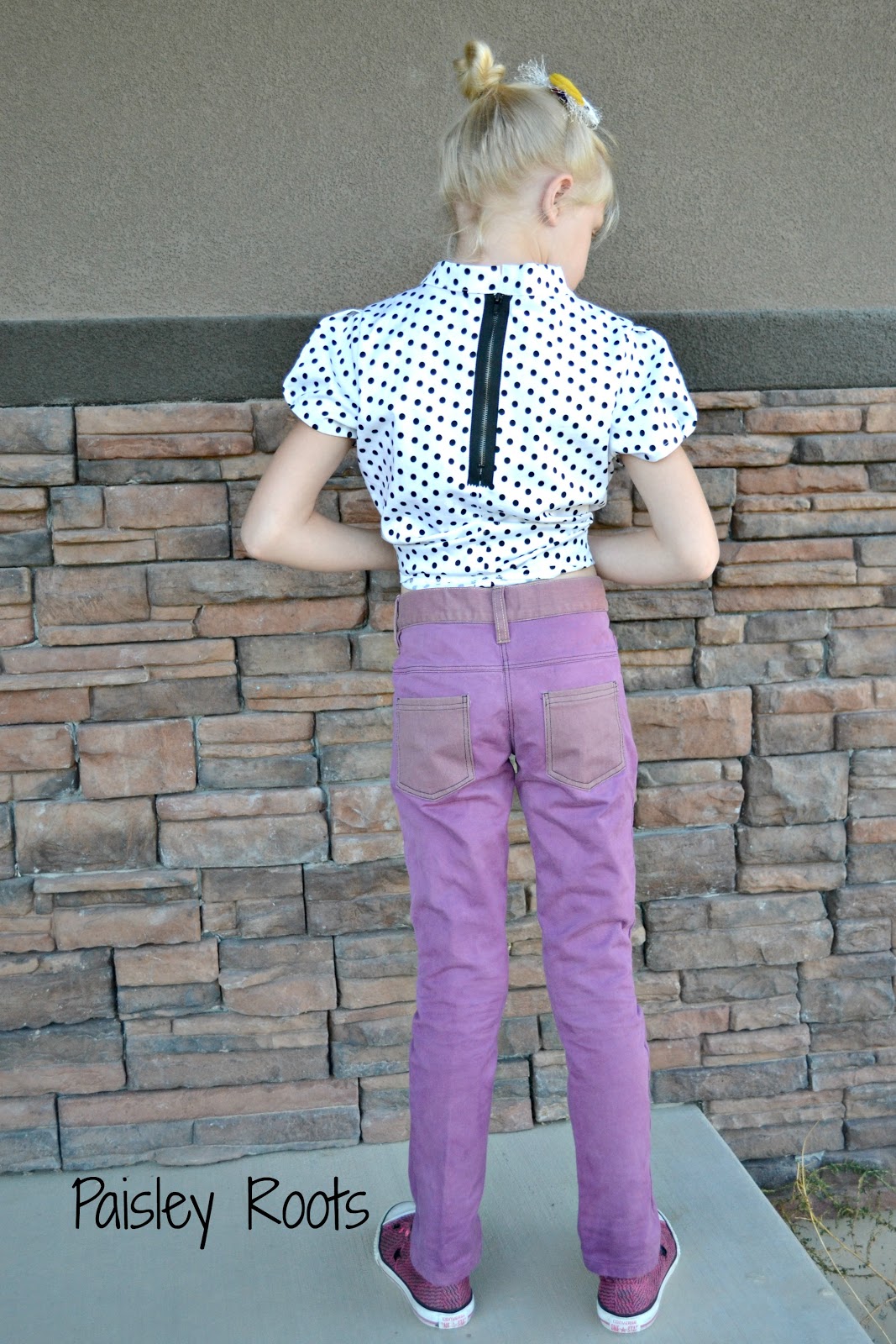 ReplyDeleteI love that color combo! Somehow the polka dot makes the purple and yellow work without it feeling like a sports team. I adore the top and those pants are FLAWLESS. I need to make a lengthened aster too. It's on the top of my list!