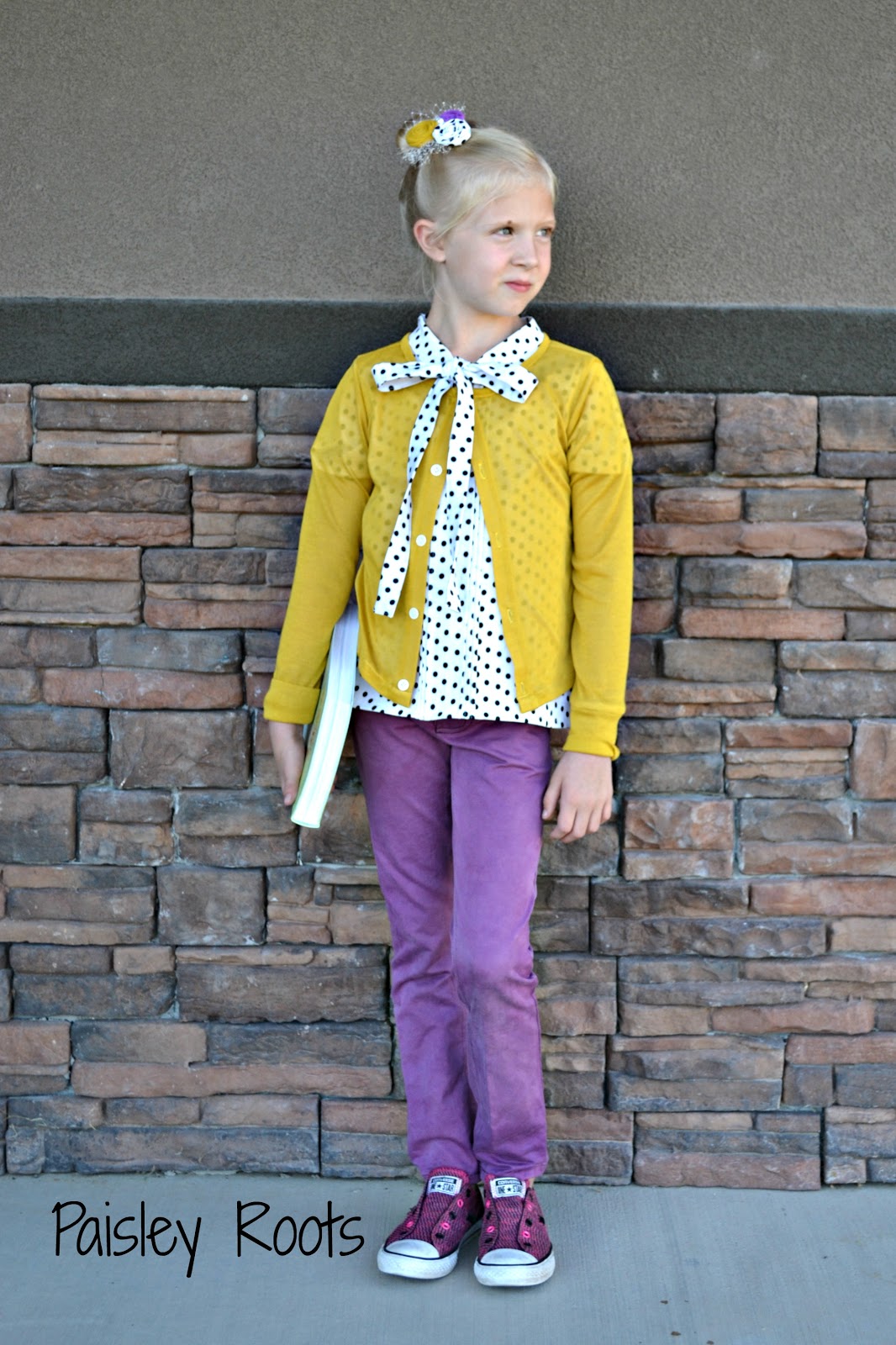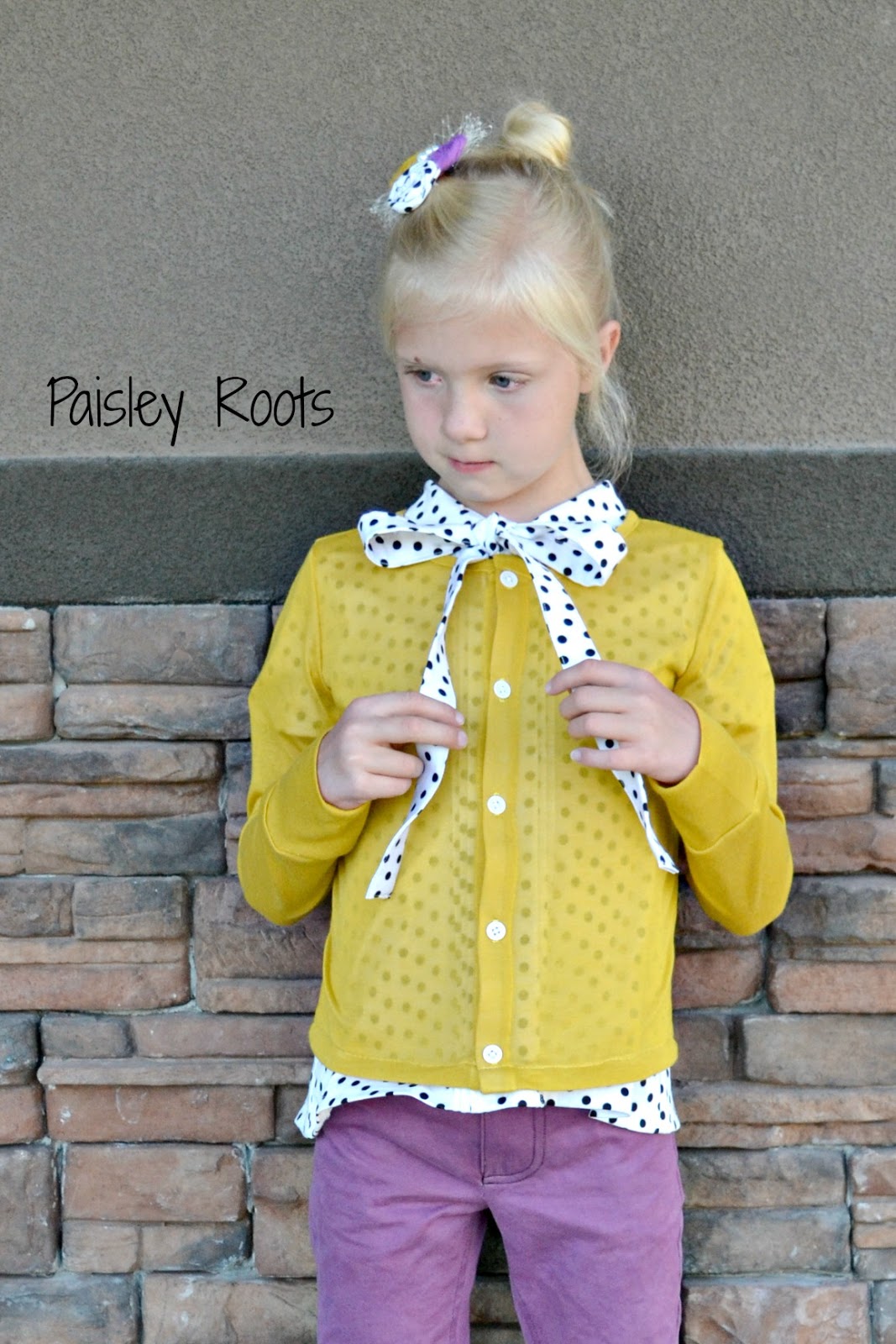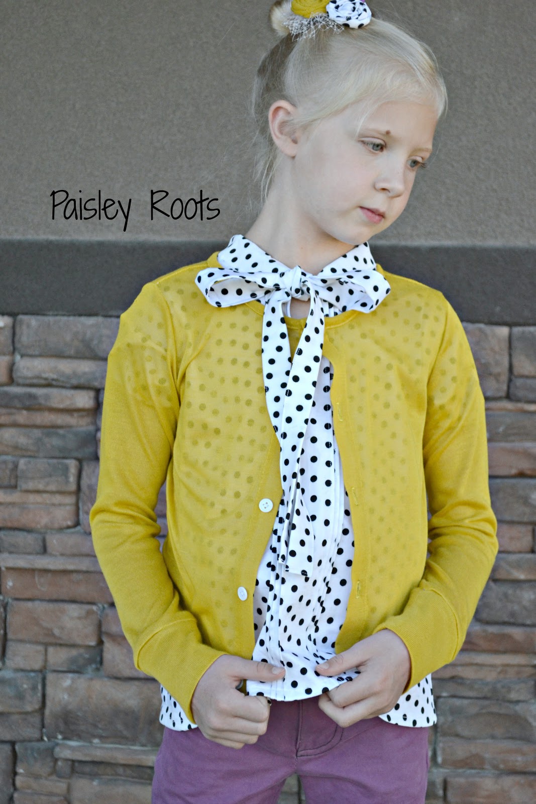 ReplyDeleteHow cute! Yours is even better than the inspiration, it comes with a lovely matching hair bow! I think I need to copy that dot shirt + yellow cardi look :)