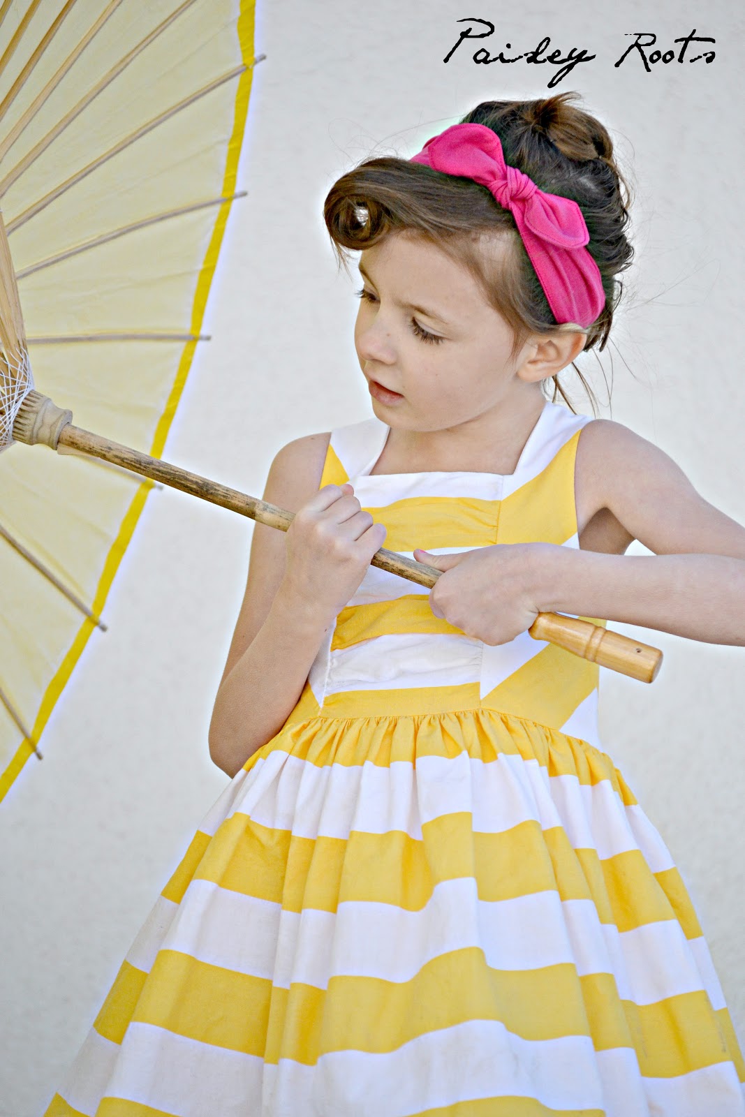 The fabric is Riley Blake 2" yellow and white stripe. Riley Blake is awesome to work with too. I've been to their warehouse 3 times in the last two weeks and they have been super sweet. Although I actually bought this fabric from ApPEARel Tree on Etsy.