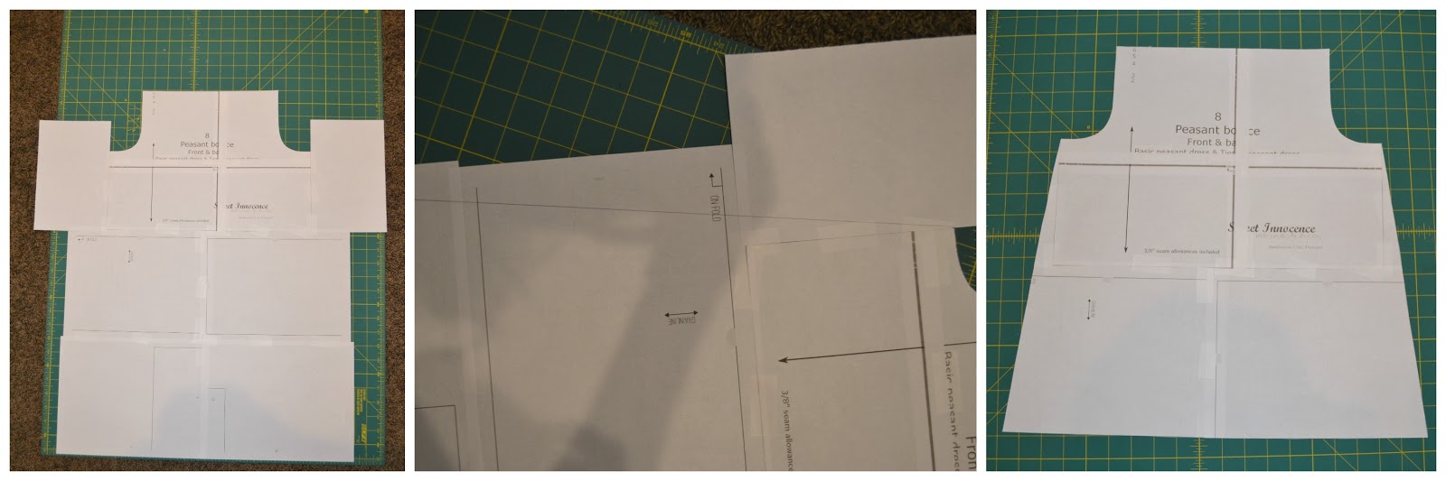 On the original pattern the peasant top has elastic around the high waist and then ruffles. Since this was for Pajama's I chose to adjust it to an aline top for more comfort while sleeping. I just added more paper to the desired length then made a line from the under arm to the hem.