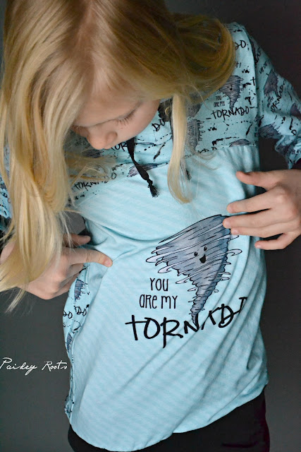 I used my Bimaa hack since it looks super cool and this kiddo loves the style. I seriously cannot tell you how much I adore this pattern and the pattern maker. It's been a huge staple in our wardrobes since it came out! Aevs kept spinning muttering "I'm a tornado, whooo!"