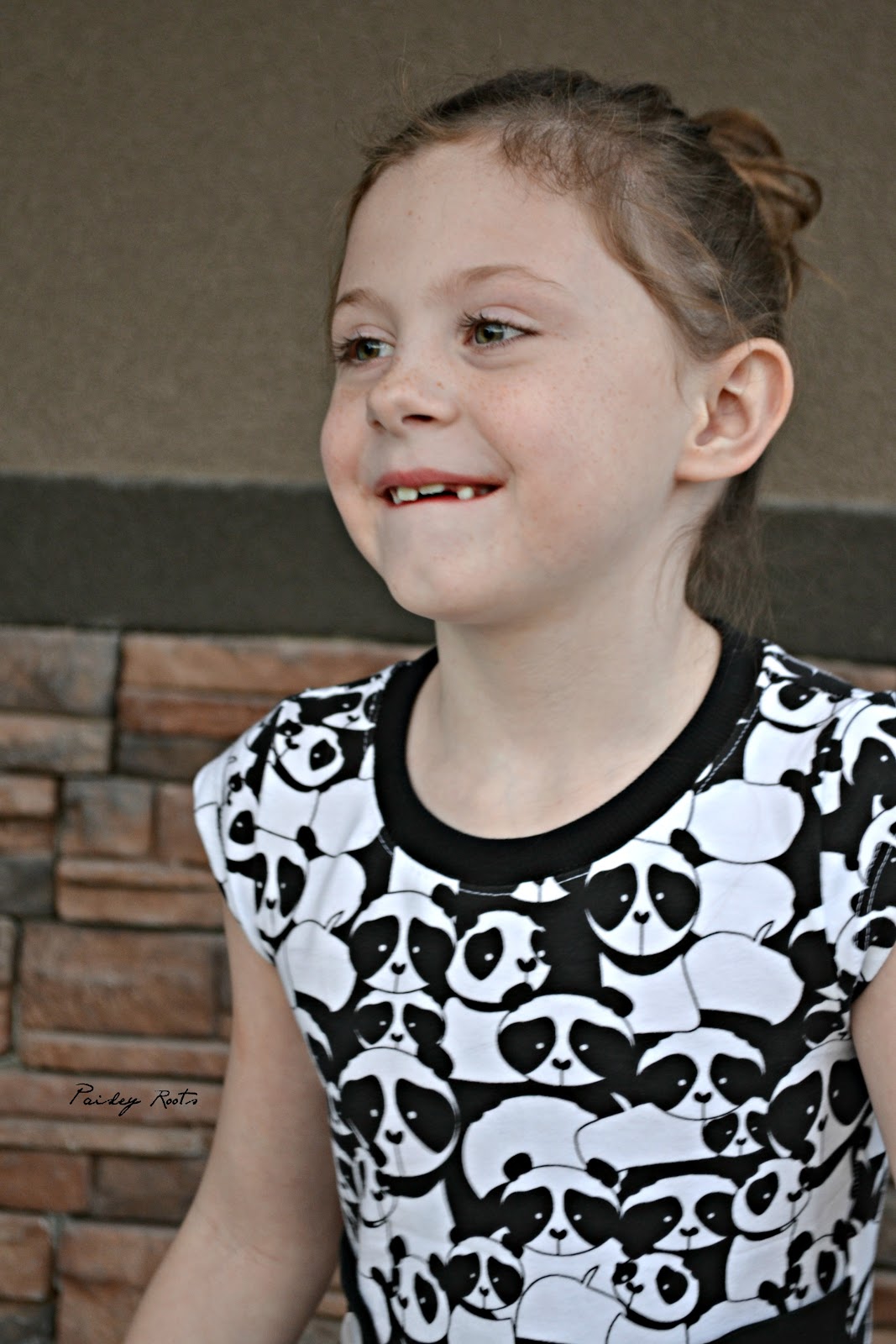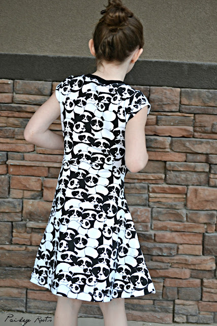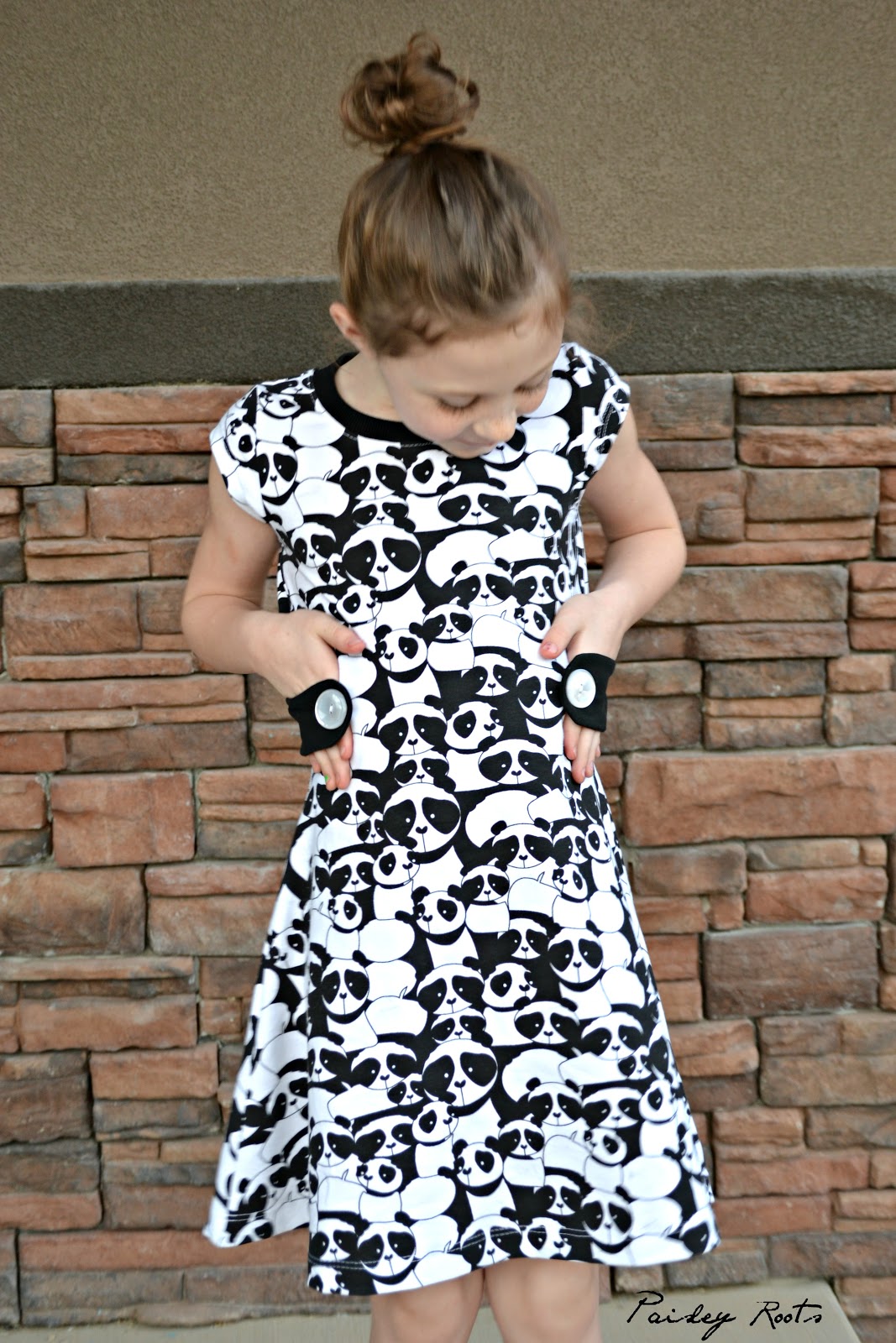 This weather is killing me with it's warm weather teases! It's no secret that my girls love, love, love dresses, so that's all I plan to make them for the summer. Zoe's first one of the year is the Nivalis Tunic and Dress pattern by Sofilantjes out of this awesome Pandamania knit.