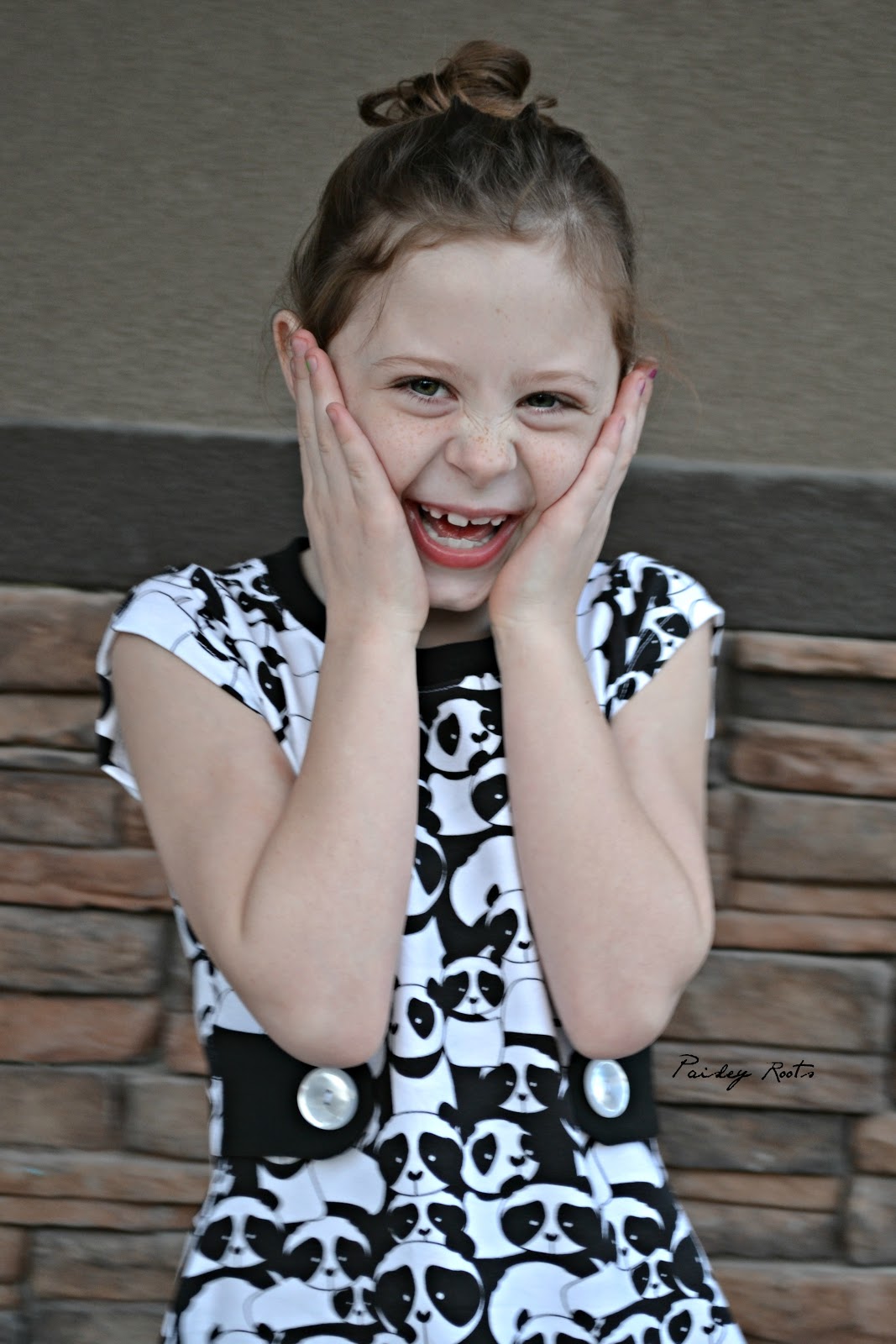 ReplyDeleteAww, she's too adorable. More of her! Mine never stands still for a second I just have to chase her with the camera:P I love everything about this dress. Huge fan of the pattern and the pandas are perfect!