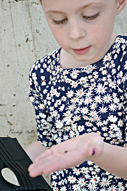 I need to start this off by saying: What on earth was I THINKING giving this child a pocket???? The moment we started taking pictures she was on the ground searching for bugs. If this child doesn't grow up to be an Entomologist, I will be absolutely stunned.