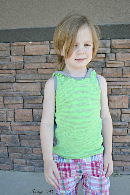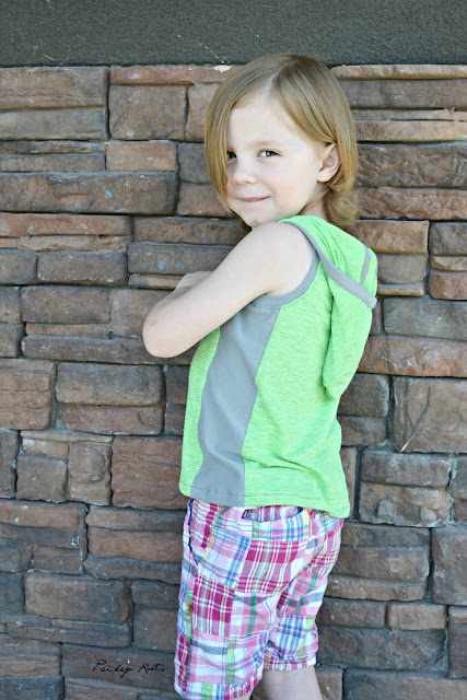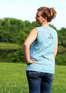 I went with her Zanzibar Shores Tank Top. Tank tops are just a must for summer and I love the design elements of the colorblocked side seams and the hood in this pattern.