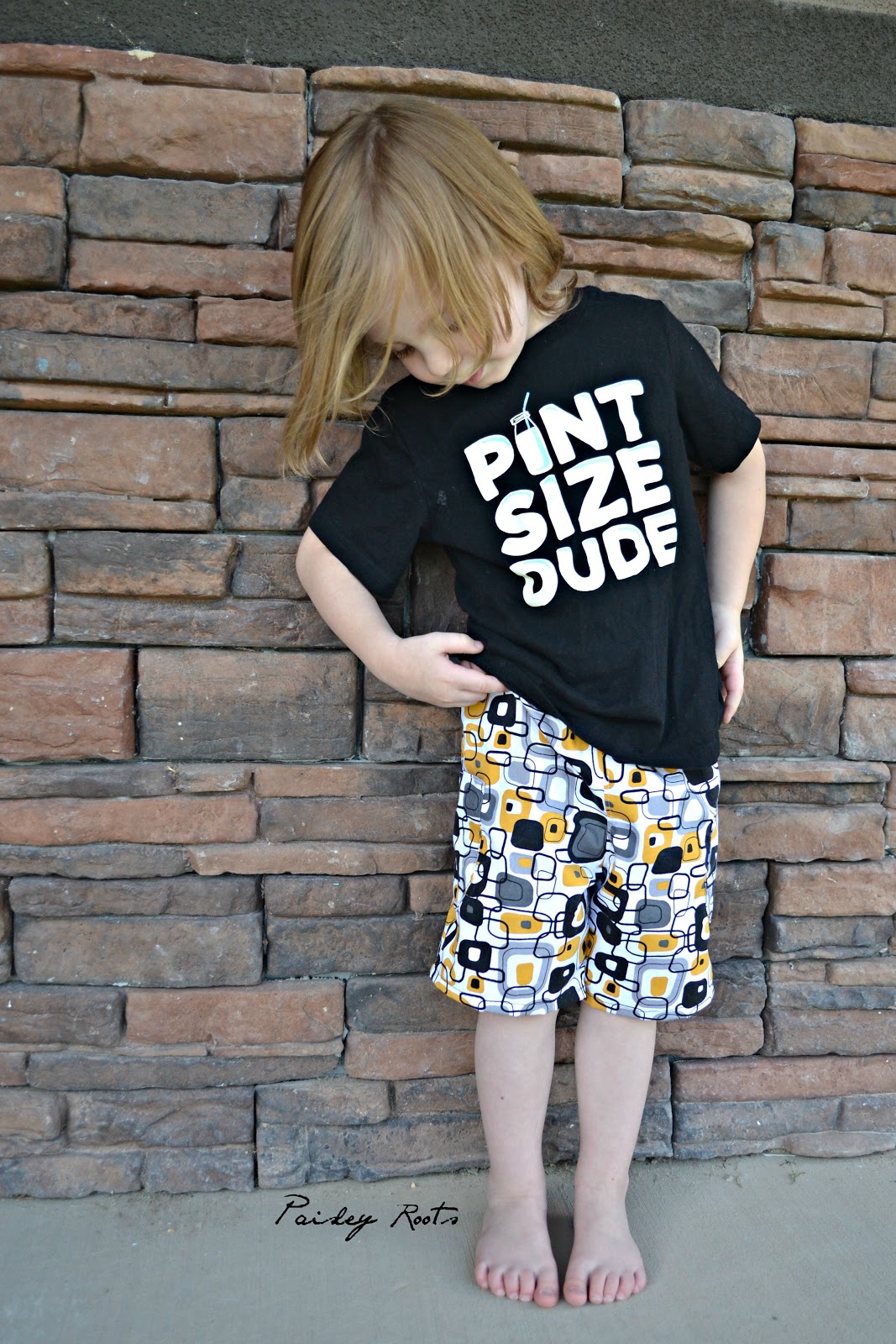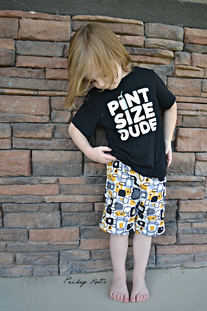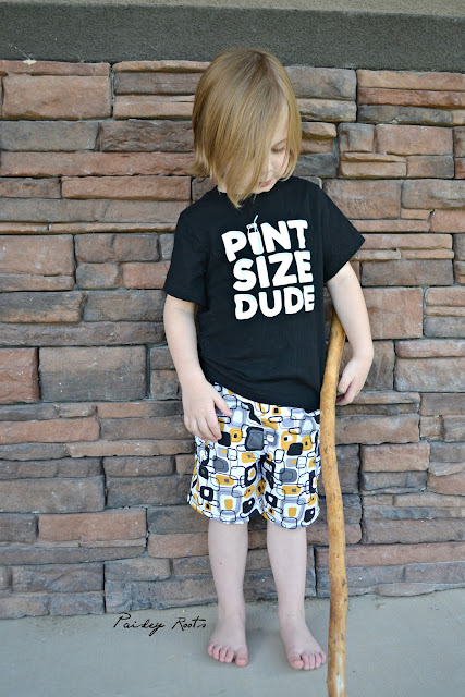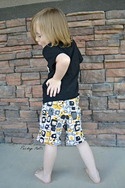 Really, these are the perfect quick shorts to make for summer. I could have easily made a whole seasons worth of shorts out of this pattern with-in the time frame of my wash and dry cycle. I made this pair in this crazy busy print I bought from Joanns. In retrospect I should have made the side pockets black so you could actually see them. LOL But as long as the kid still can use them (he's not my bug collector) it's all good!