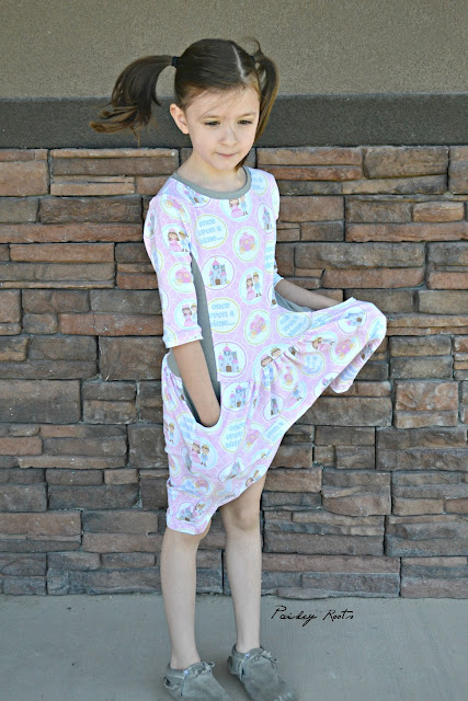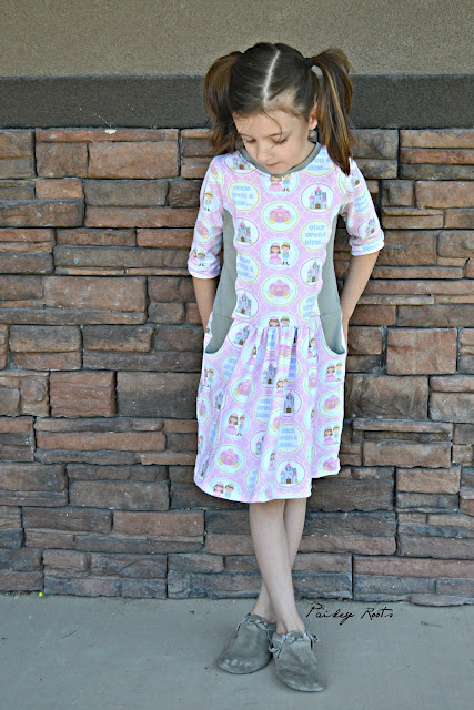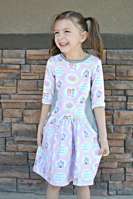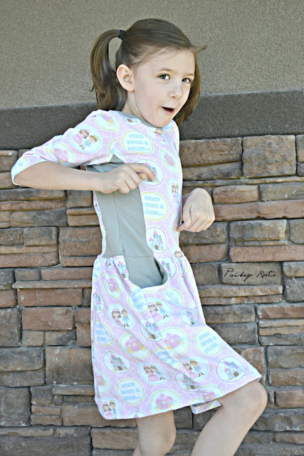 I chose to make her Pockets Full Of Posies Dress for today's post. I love the lines and fun colorblock detail. This dress is just fun and works perfectly with scraps.