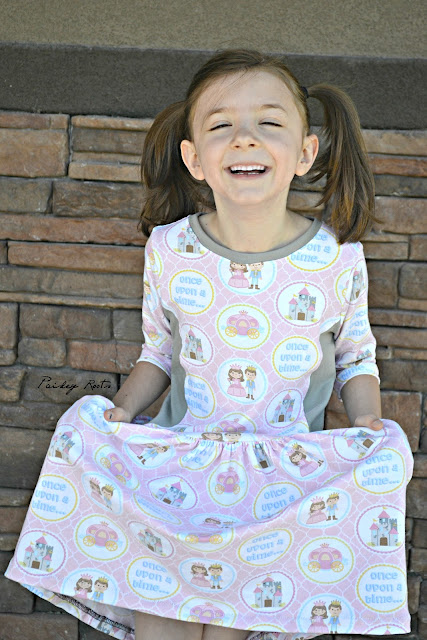 As you can tell, this child loves her dress. The dress took me about an hour to make. Still plenty of time from my wash and dry cycle. I think the hardest part in making clothing is choosing the fabric, really, and with this dress you can have so much fun deciding on what to mix and match, THAT may make it a not-so-fast-sew.....