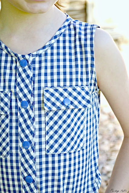 Good rompers are hard to find and this one is just perfect! I love the simple lines and the details. Button placket, cuffs and front pockets. I chose to have fun with the gingham print and cut the neckband, waistband, pockets, and cuffs diagonally. It gives it a fun detail. I also put in eyelets and used twill tape for the waist band instead of elastic. Any opportunity I get to use twill tape, I do. I just love it!