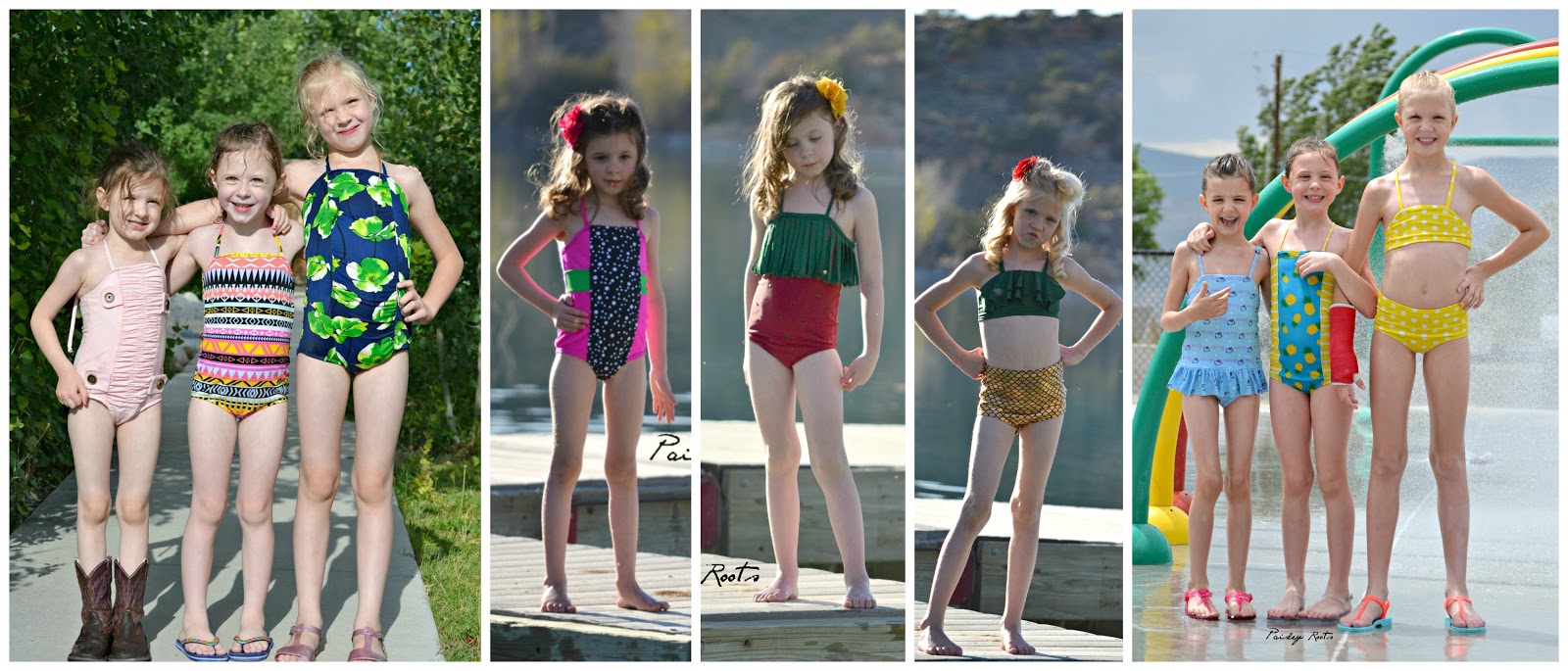 LOVE those suits. I have been eyeing Peek-a-boo's swim fabric since they launched it but haven't ordered any yet. That pattern looks great with so many different options for all three girls!