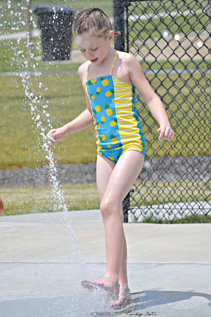 My kids are water babies and are always playing with water. It drives me nuts! But I do get to make them swimsuits and I'm pretty sure that out of everything I make them, swimsuits are the most beloved and worn. And that's saying something.