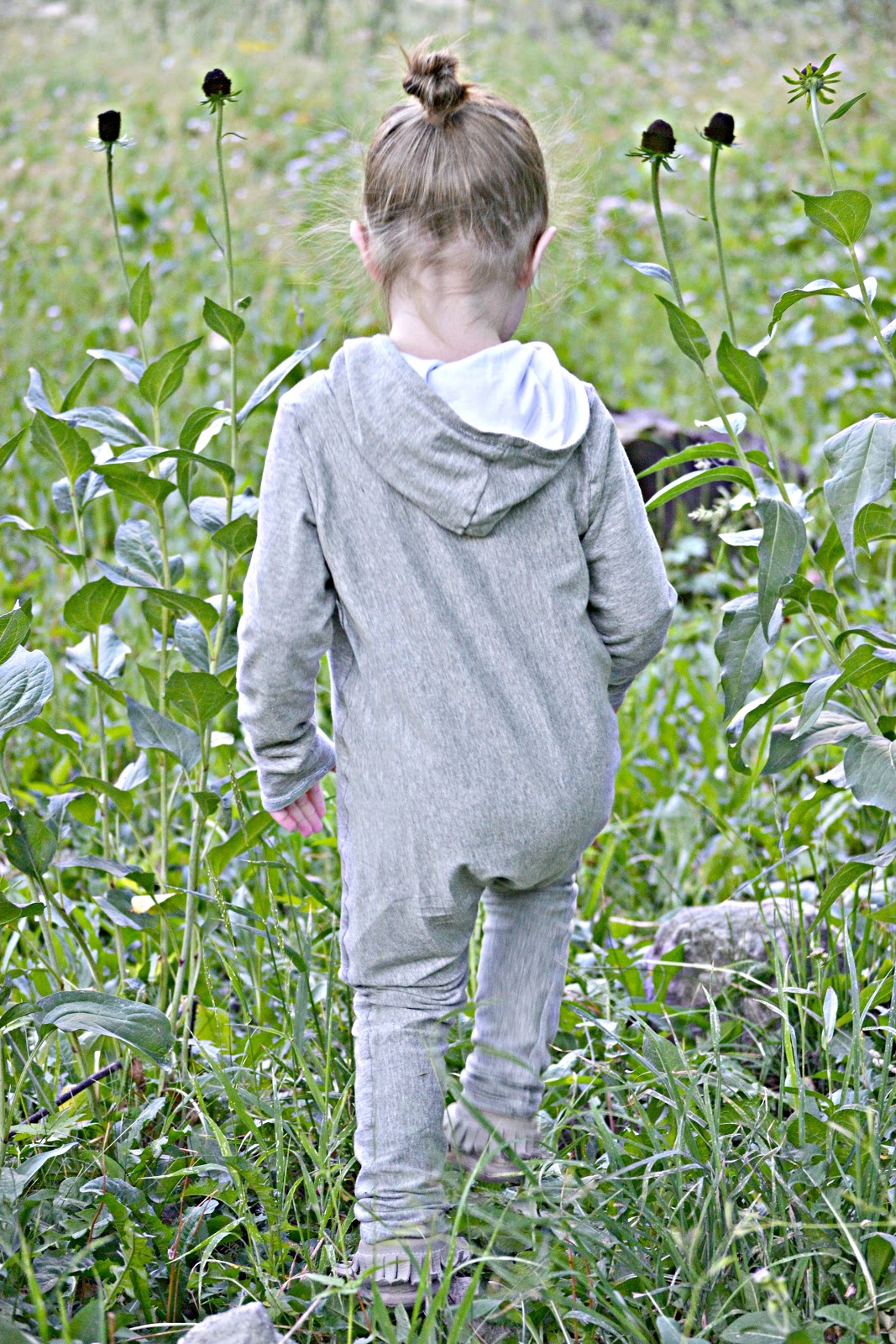 To make this costume I started with Brindille & Twigs Harem Coverall then added the hood from their Hoodie pattern. The neckline is still accommodating enough for Jude to easily slip it on and off, which he has loved.