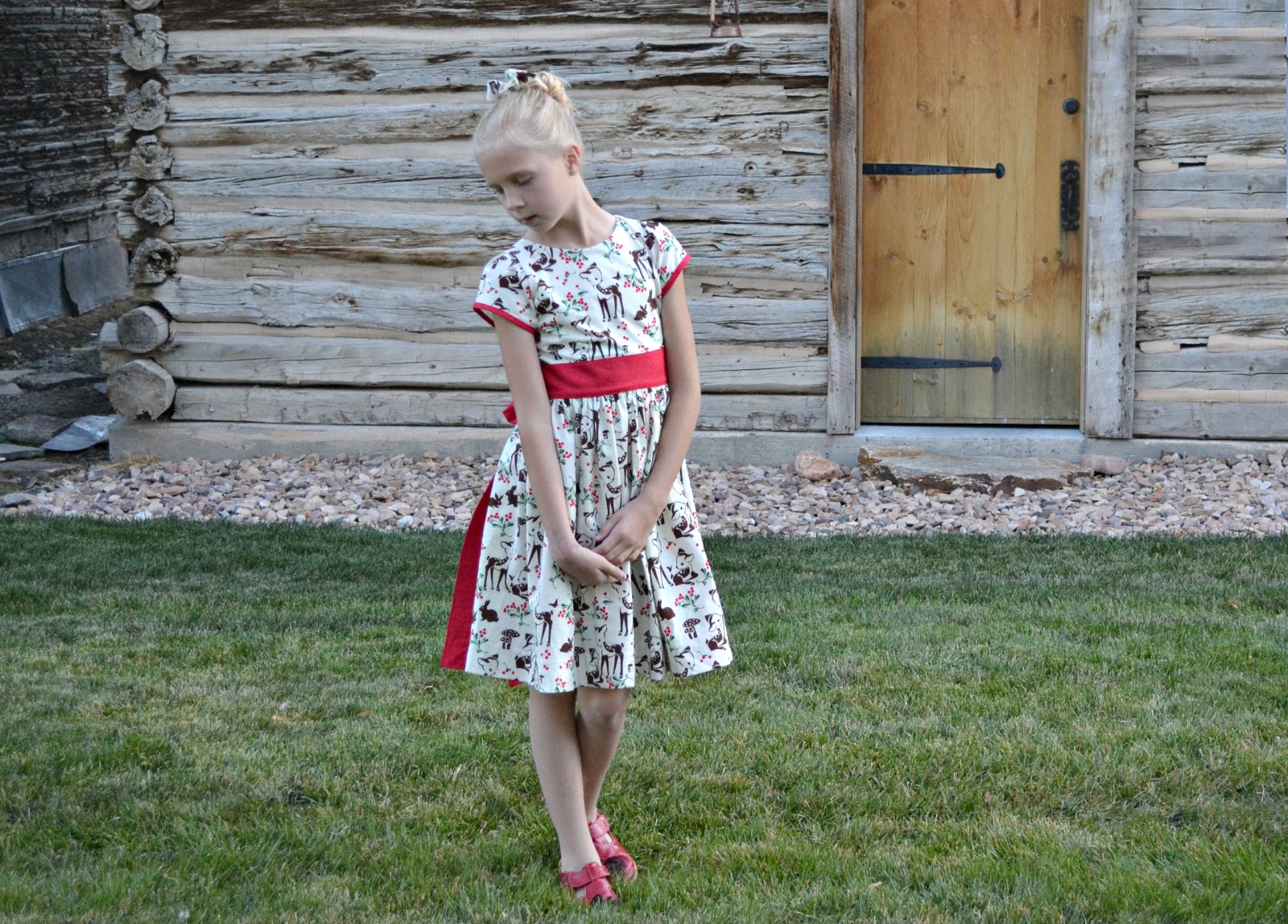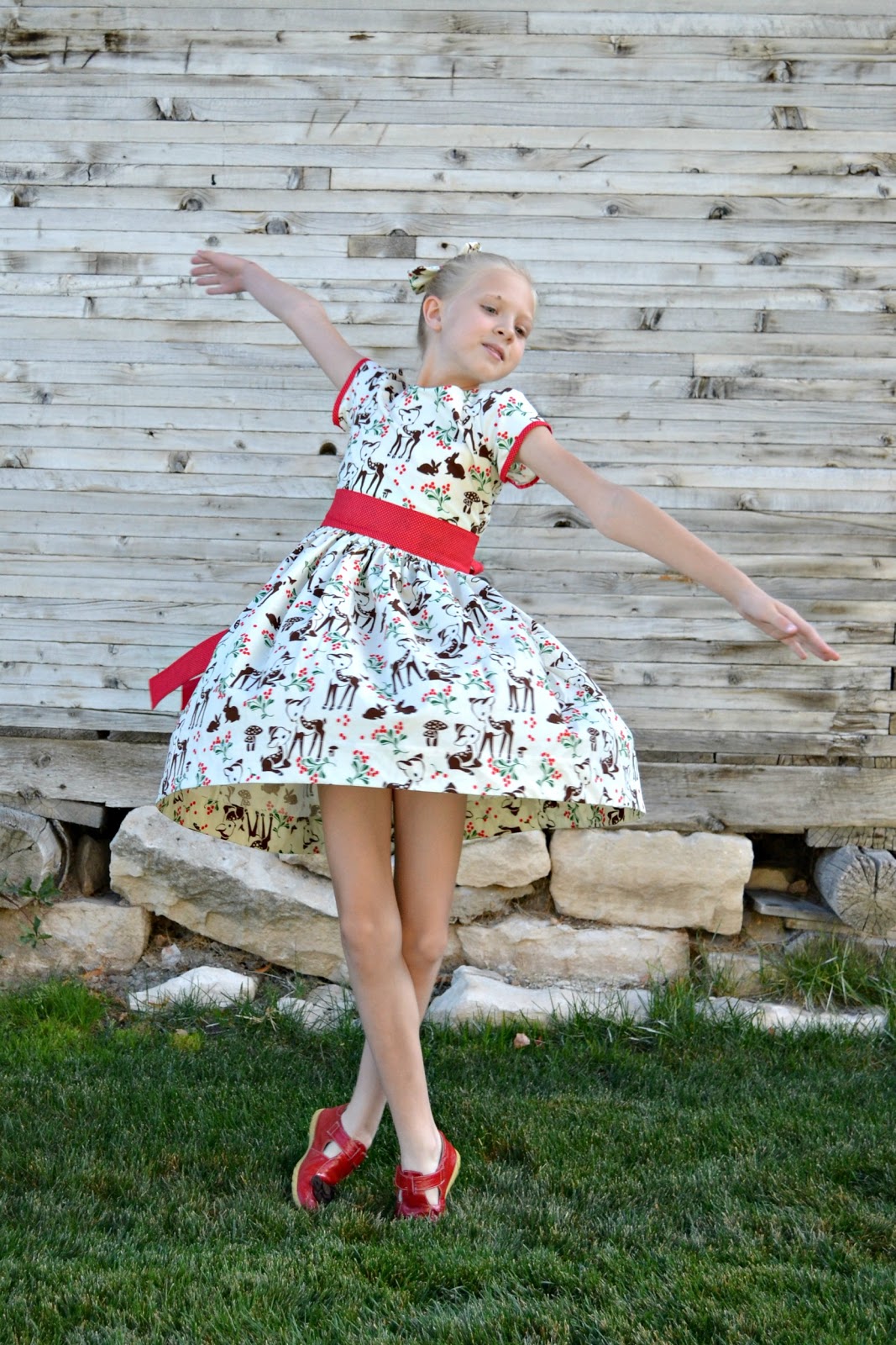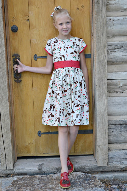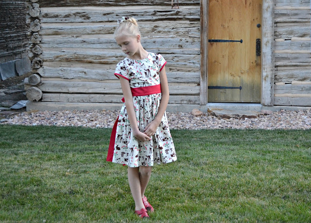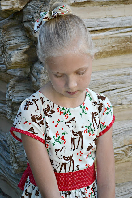 I finally settled on Fawn Memories by Micheal Miller Fabrics to make Aevarie a Christmas dress. This print is just darling and makes such a lovely Christmas dress.
