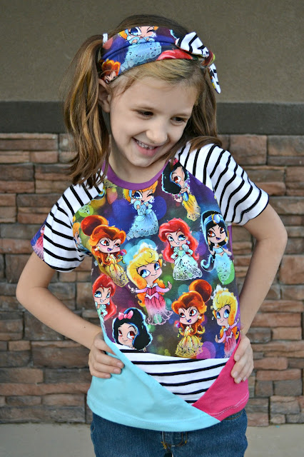 We have not made enough Kite Fold Tee's by Made It Patterns this year. So I figured I needed to rectify that problem. What better way to start it off than with a custom Princess knit?? My girls were literally fighting over this print from Sash Fabrics, and Paisley won out.