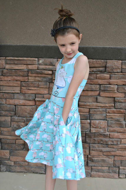 My girls favorite thing about this dress is it's twirl factor. I also put pockets in for Paisley. She's used to Zoe's non-pocketed hand-me-downs and was pretty stoked when she found them!
