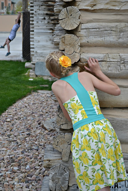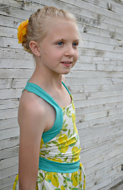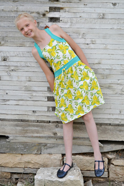 My fabric is Yuma Lemons from Art Gallery, along with Art Gallery solid turquoise. I just love these lemons!