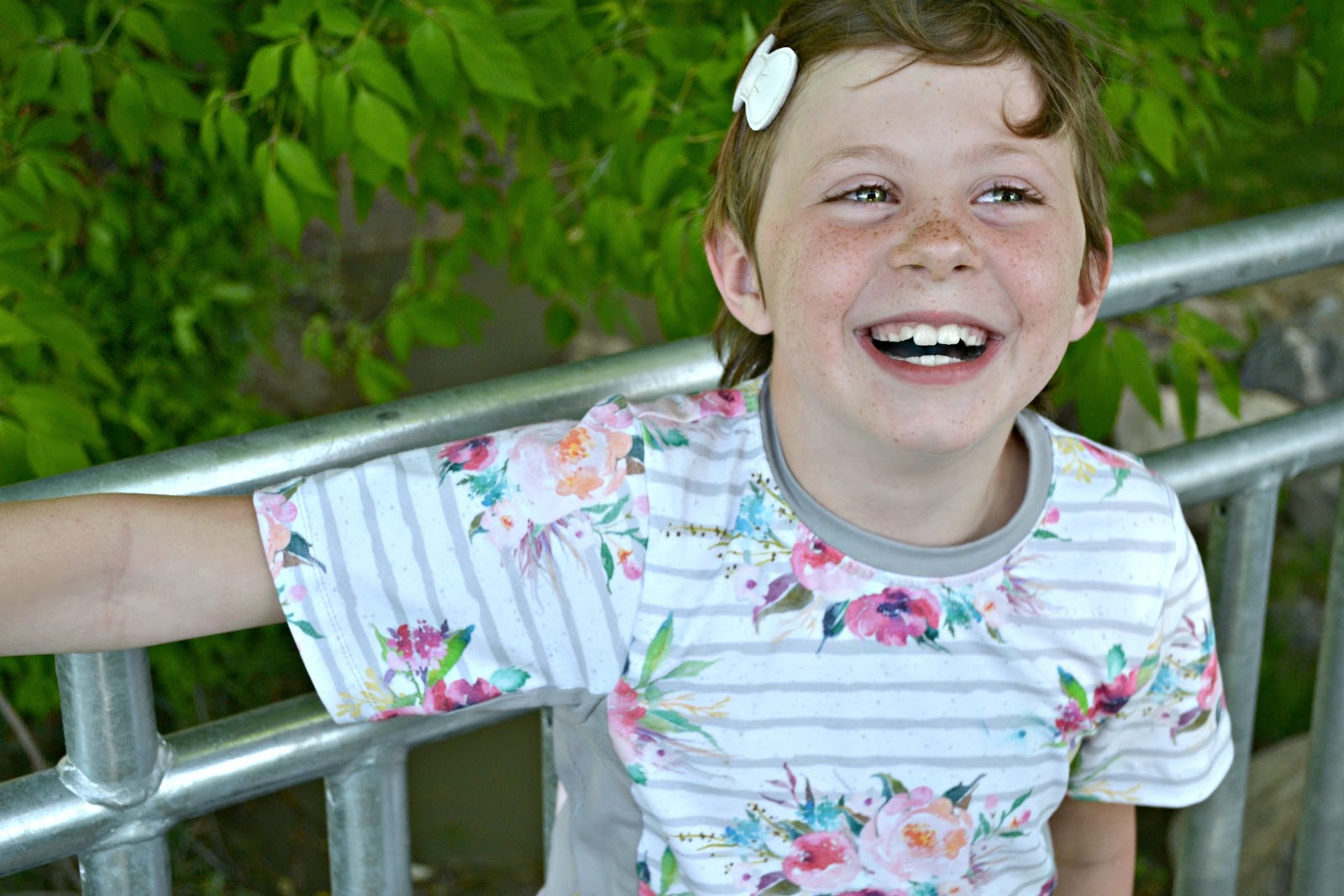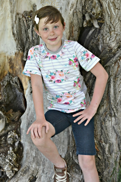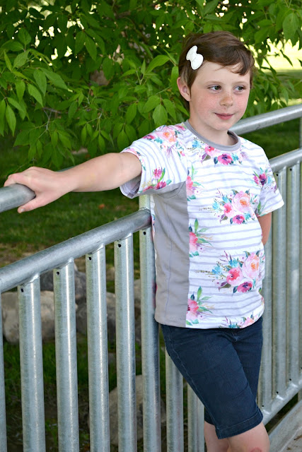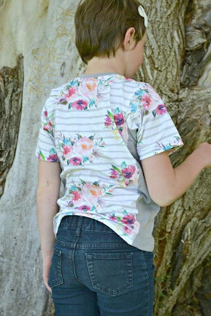 I made Zoe's in Raspberry Creek Club Fabric's Floral Stripes paired with solid grey knit from Riley Blake Designs. I really love this floral! The pattern was very easy to put together and it fit so well!