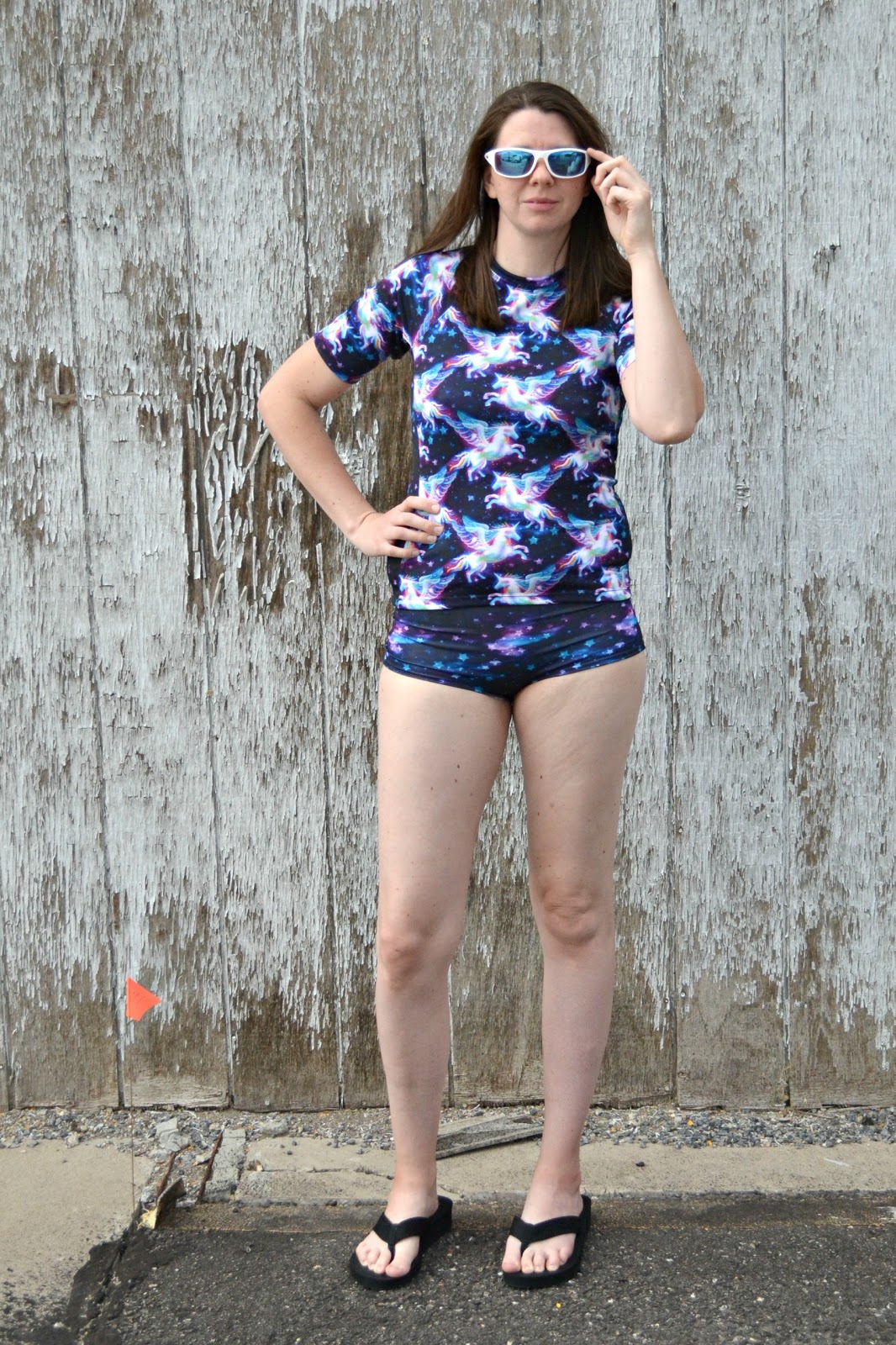 I had to have a rashguard, and Jalie had a perfect one! The Valerie was incredibly fast and easy to make. I do wish I would have added a little length to it, but I still love it. I didn't add a shelf bra to it, although the next one I'm for sure going to try it.
